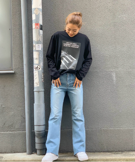 大人気バックプリントの”livelikealocalプリントロングTシャツ“