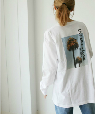 大人気バックプリントの”livelikealocalプリントロングTシャツ“