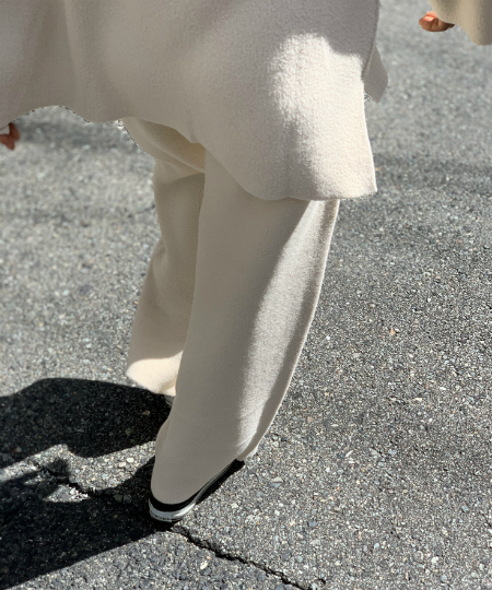 カシミヤを使用したとろみのある素材とゆったりとしたシルエットが、