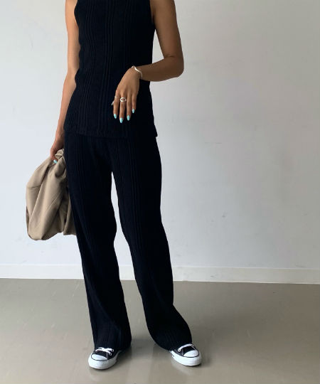 同素材を使用した(202-000258)ランダムリブニットパンツ