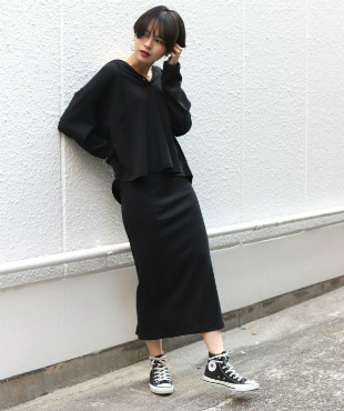 天竺パーカー&タイトスカートセットアップをご紹介します。