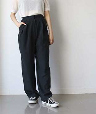 同色のボトムスでセットアップ風に。