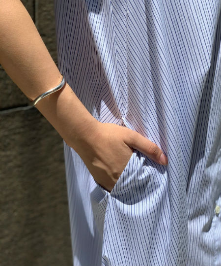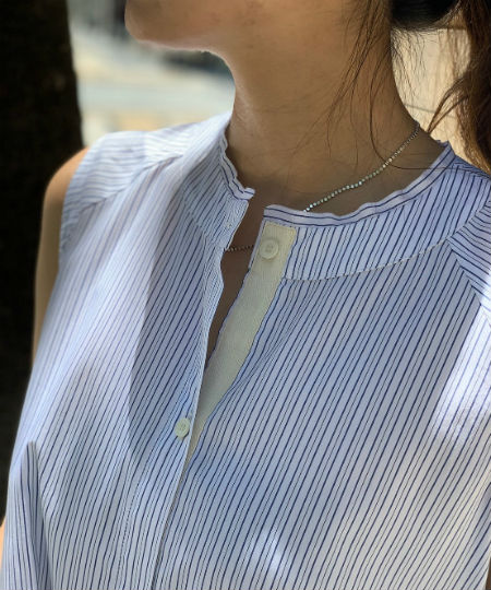 清潔感のある涼しげなワンピースは、バンドカラーで首元がスッキリ見えるアイテム♪