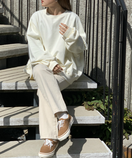 オーバーサイズが可愛い裏毛素材のトレーナー。