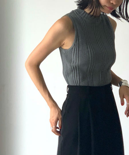 - 【RCW】ランダムリブニットモックネックタンクトップ