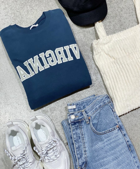 via j(ヴィアジェイ) “VIRGINIA”リバースロゴ裏起毛トレーナーをご紹介します!