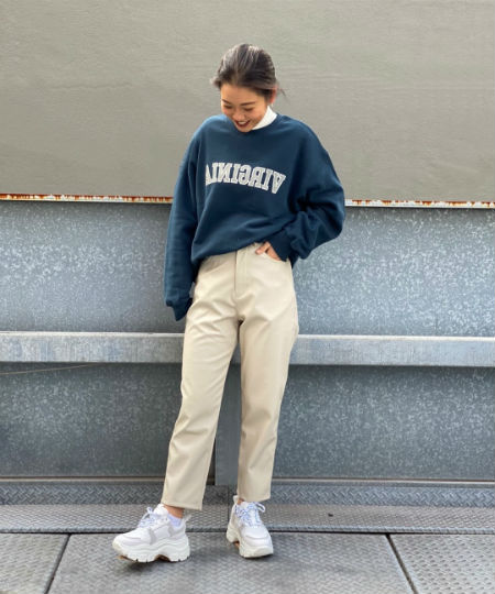 Tシャツやタートルネックをチラ見せしたレイヤードスタイルもオススメです☺︎