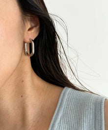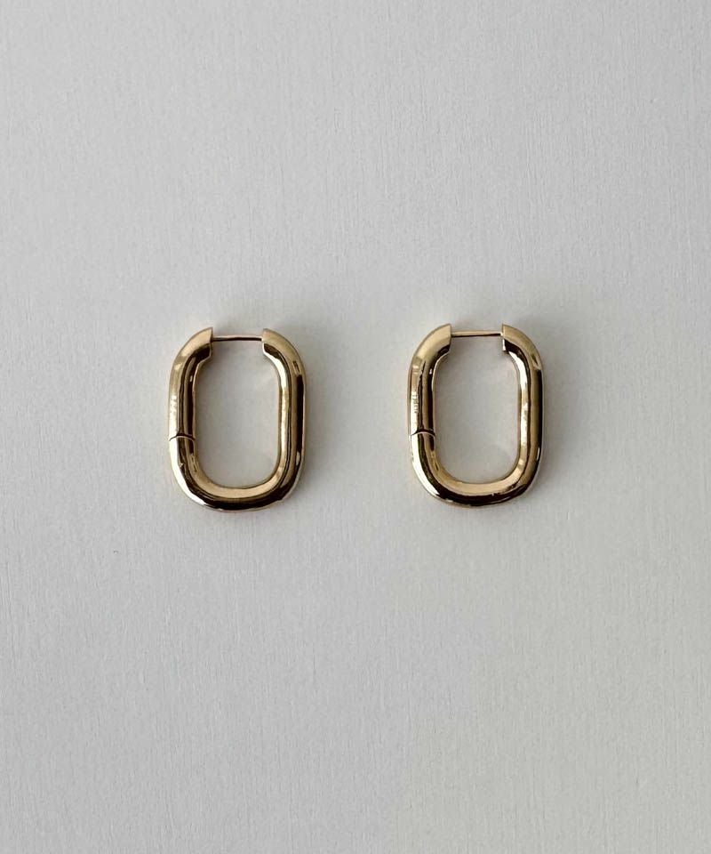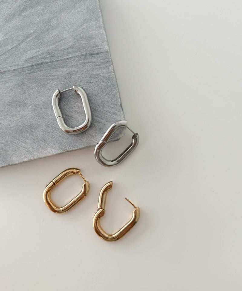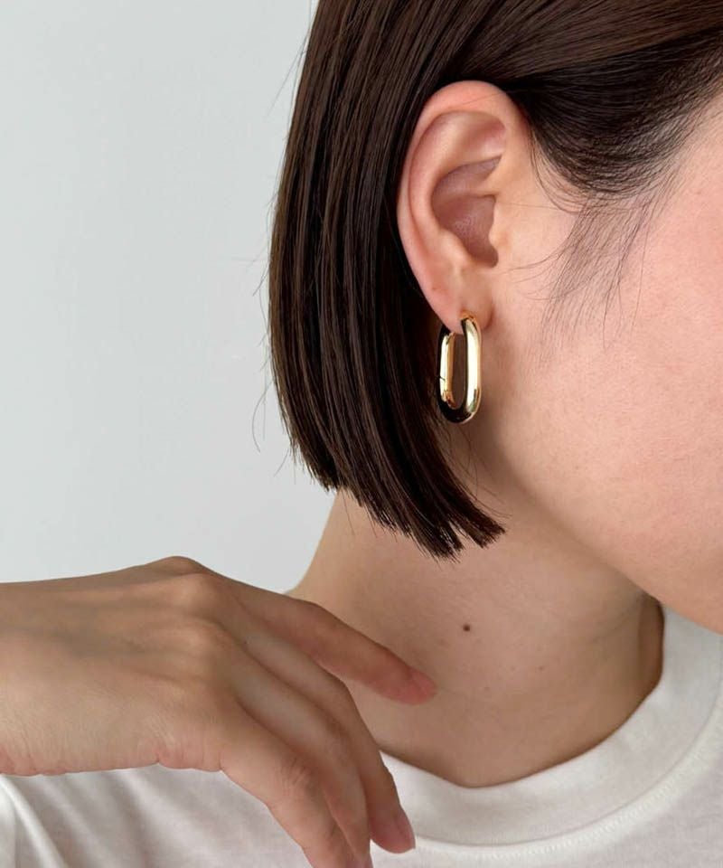やや大きめのフォルムで存在感のあるレクタングルピアス。