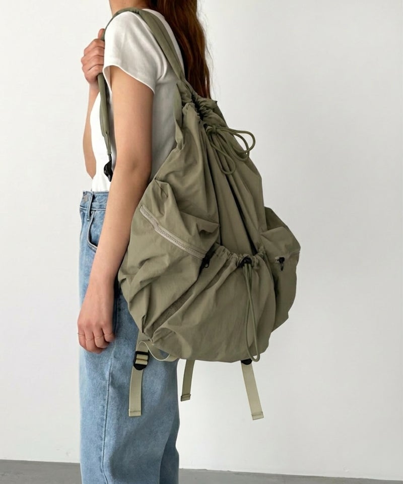 開口部はドローストリング仕様で大きく開くので、物の出し入れがしやすいのもポイント!