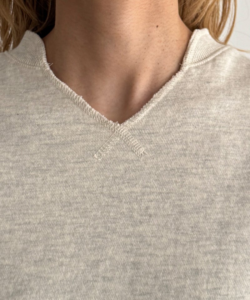 キーネックデザインがデコルテラインの程よい肌見せと抜け感を演出。