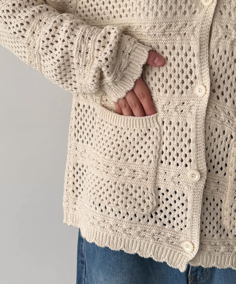 コットンリネンクロシェ編みカーディガン