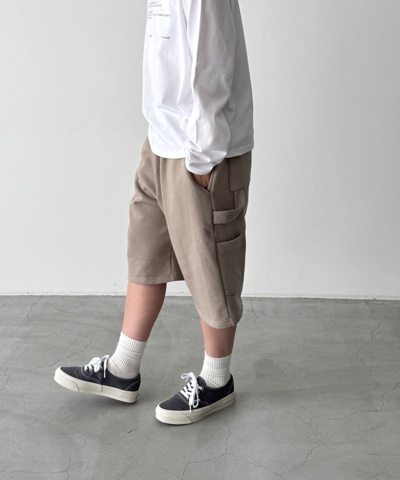 スウェットのラフな雰囲気に、ワークパンツらしいディテールを掛け合わせたハーフパンツ。