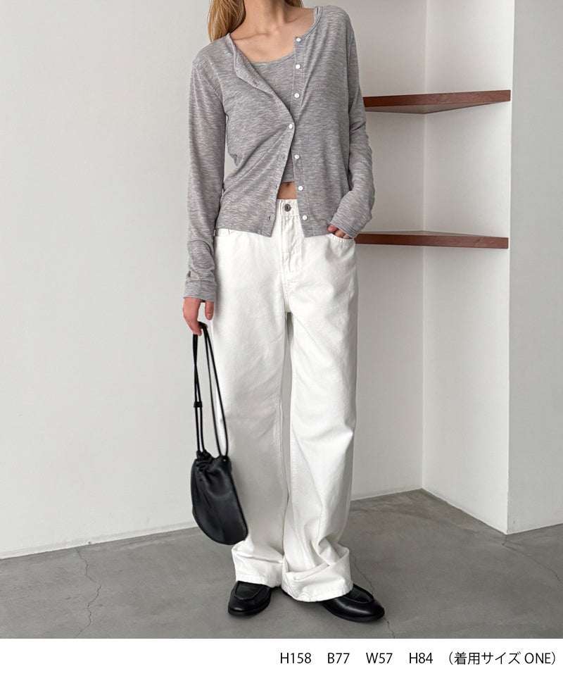 シンプルながらも1枚で着映えし、ほどよく肌見せを効かせたデザインが女性らしい抜け感を演出してくれます。