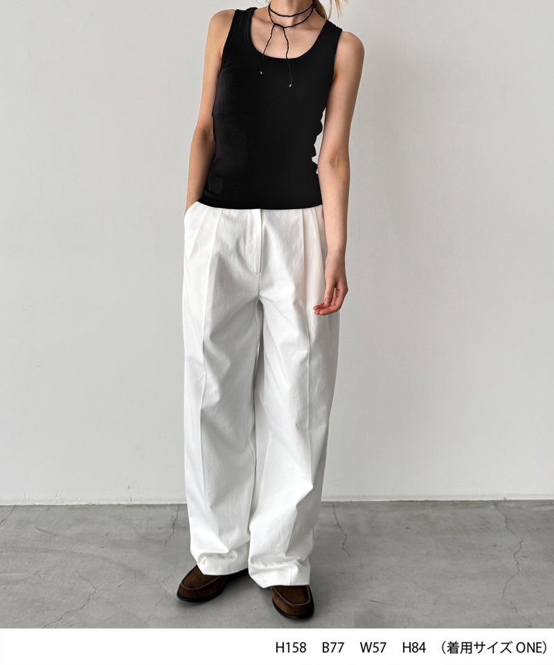 同型のタンクトップを重ねたレイヤードスタイルもおすすめで、インナーをちらりと見せることでシンプルなコーディネートに奥行きが生まれます。