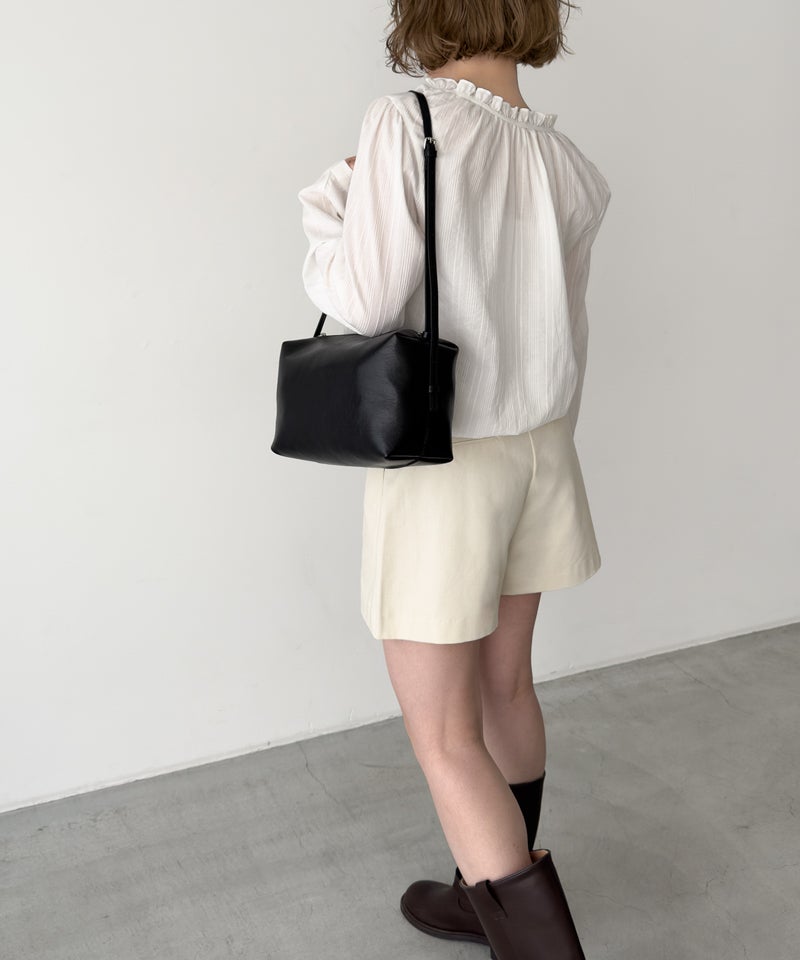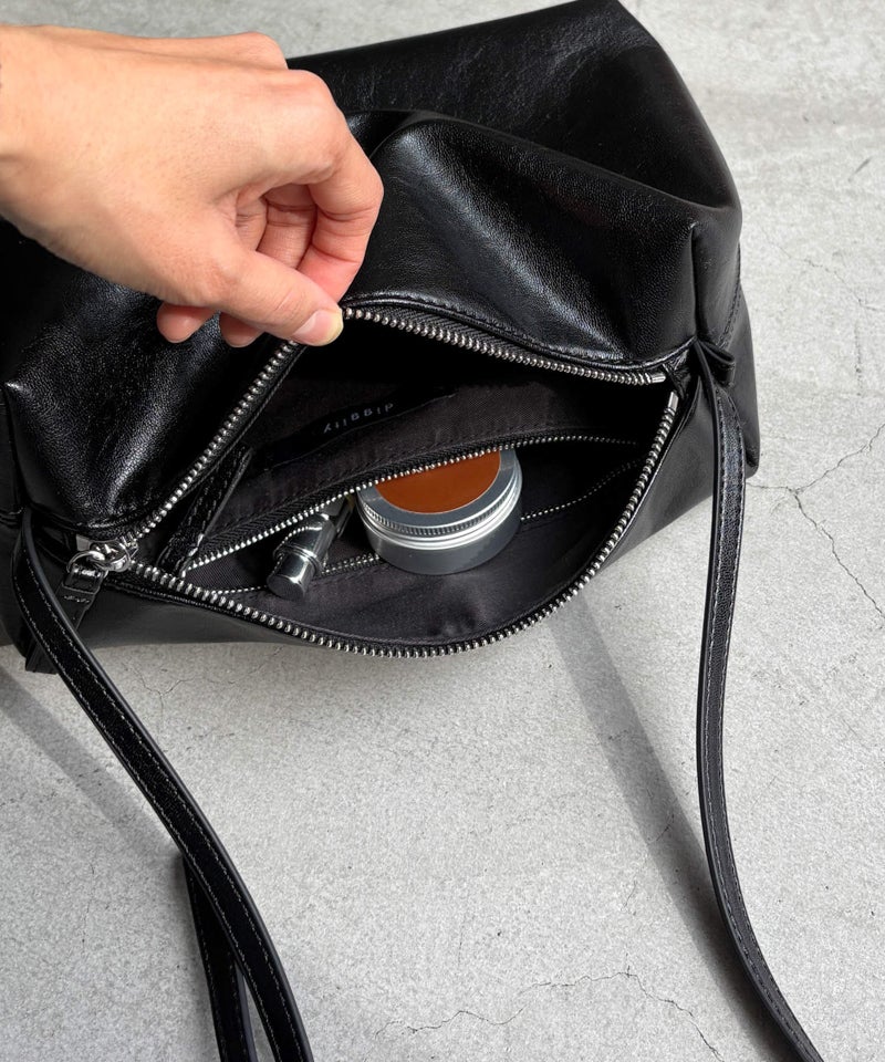 柔らかいフェイクレザー素材でヴィンテージライクな印象に。