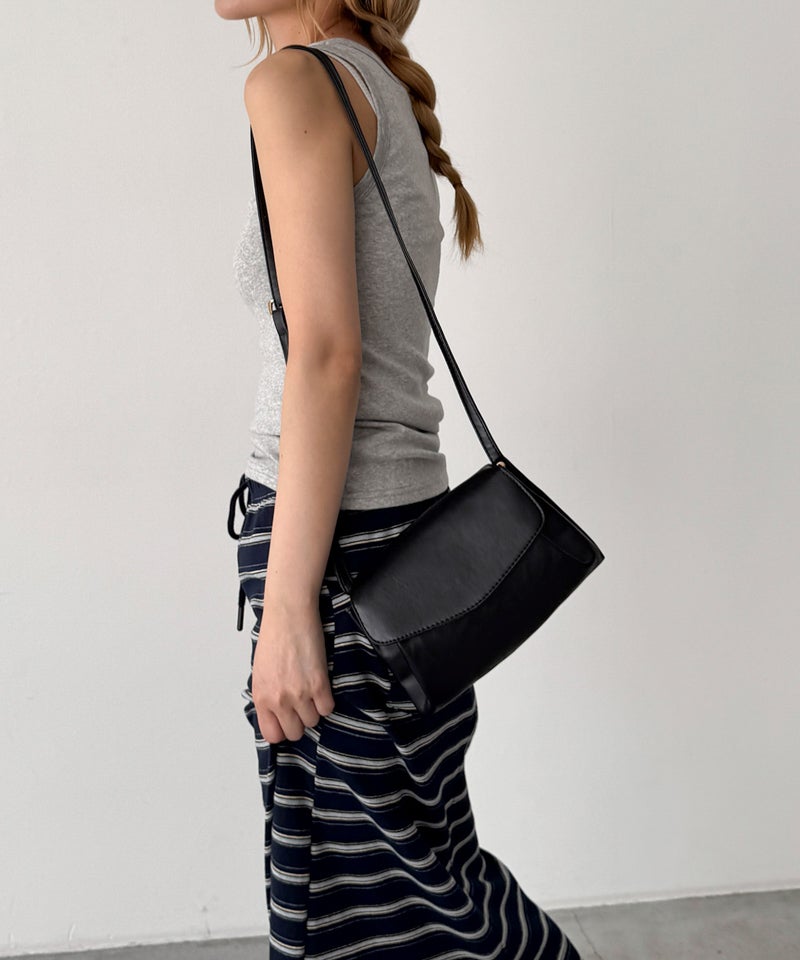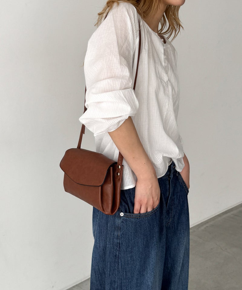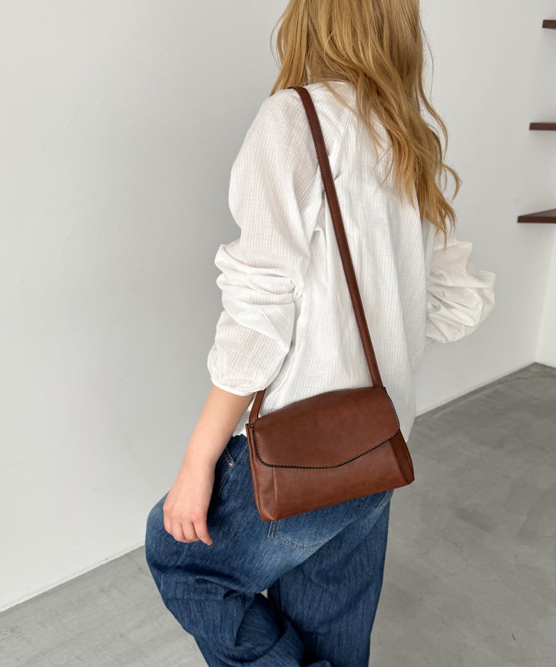 コロンとした立体的なフォルムと、無駄のないフラップデザインが上品なショルダーバッグ。