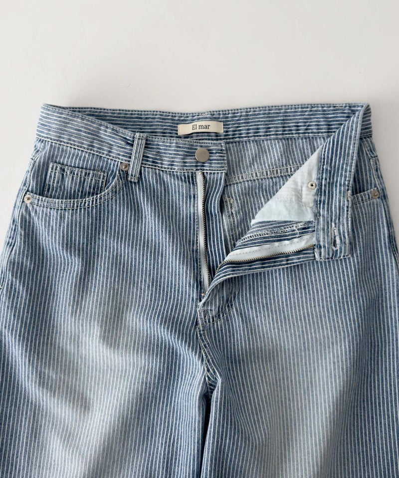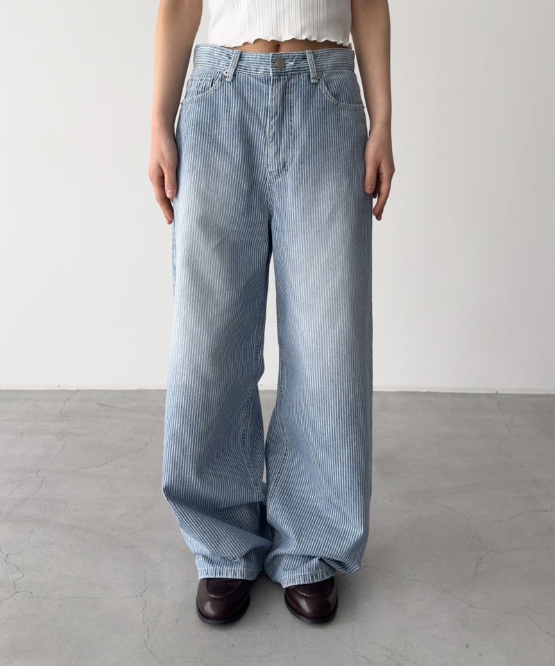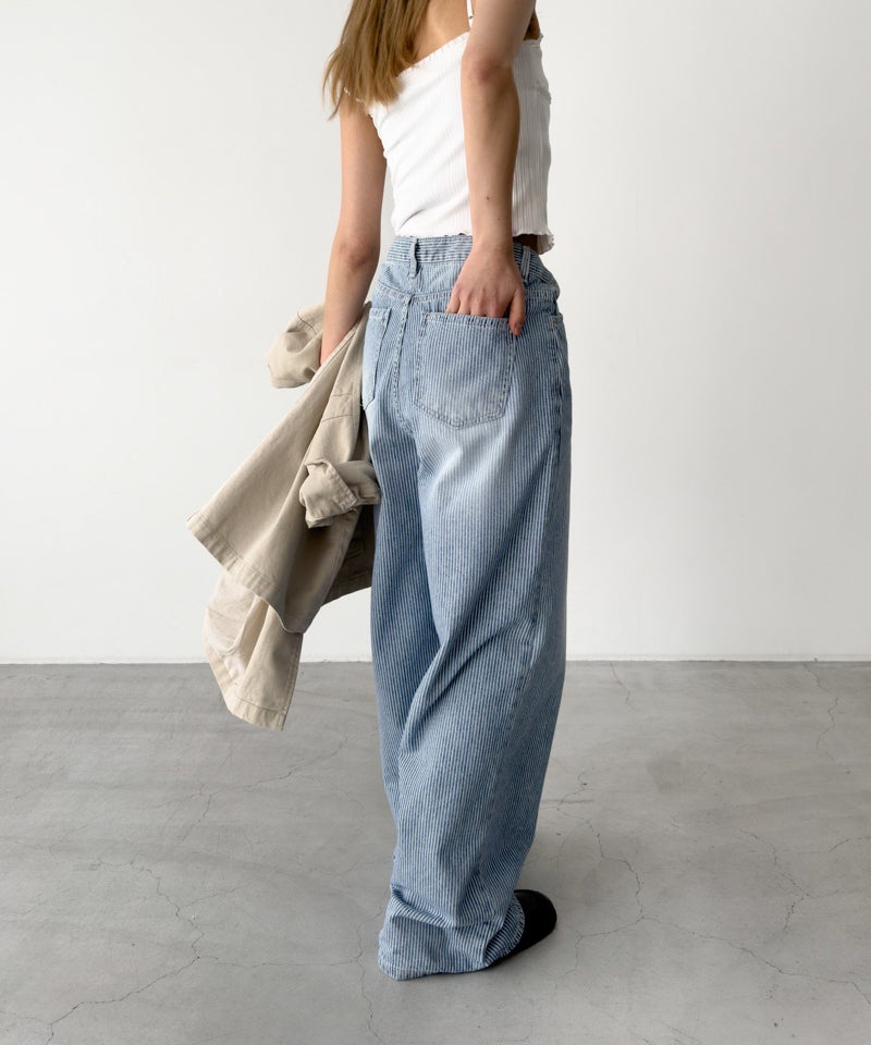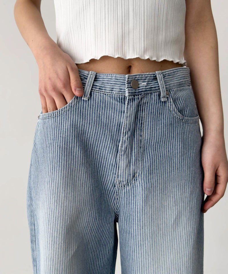 ストライプ柄で存在感のあるヒッコリーパンツ。