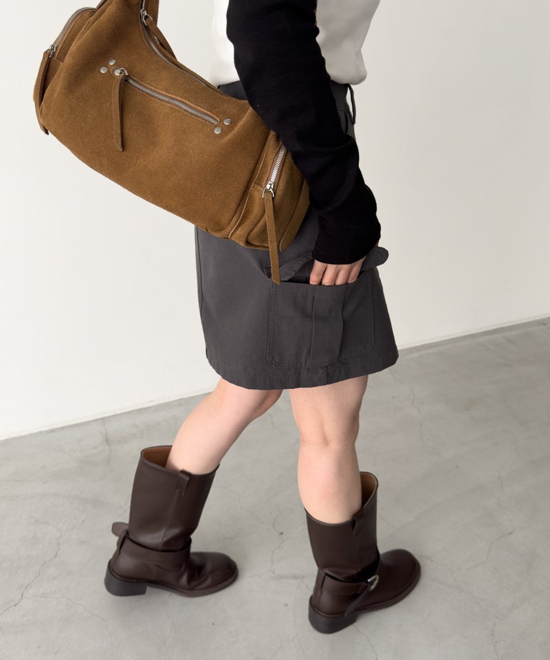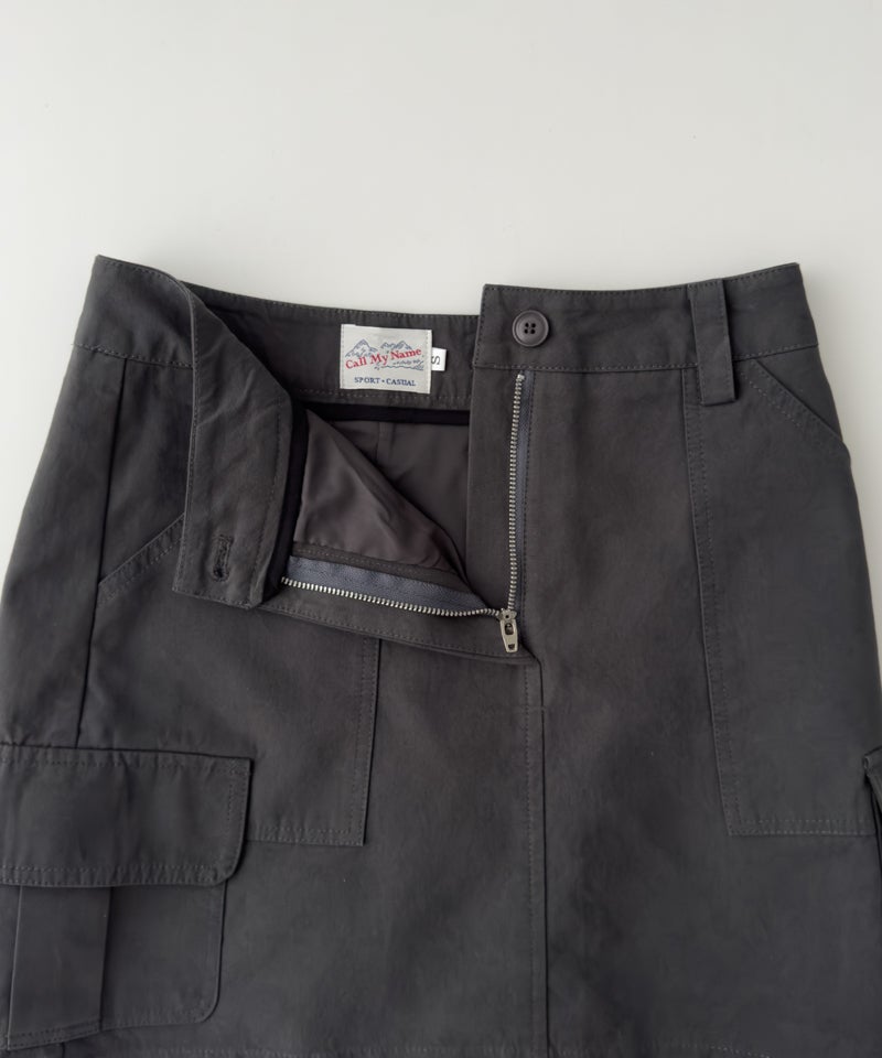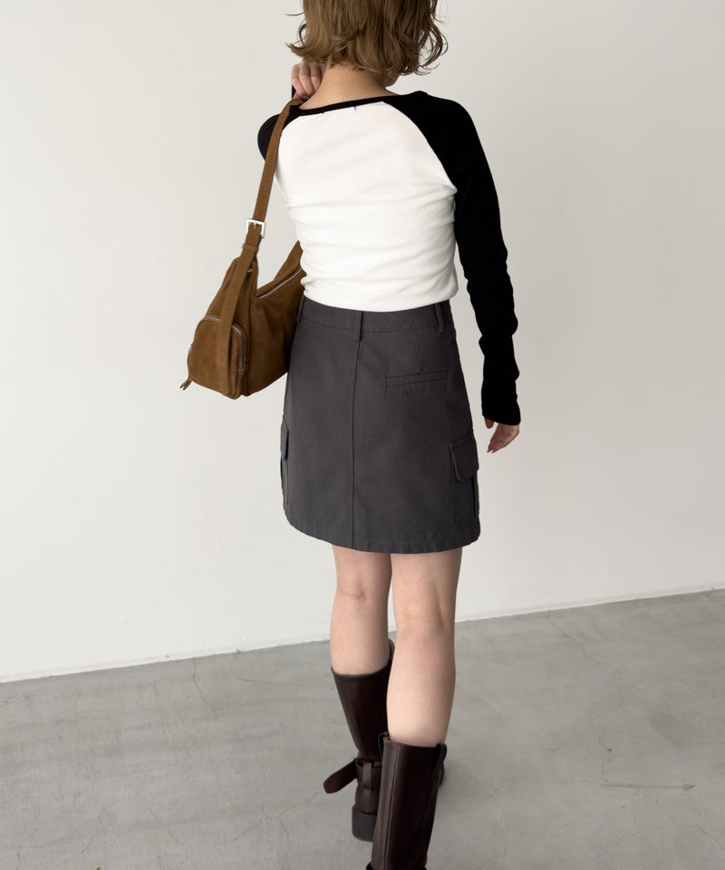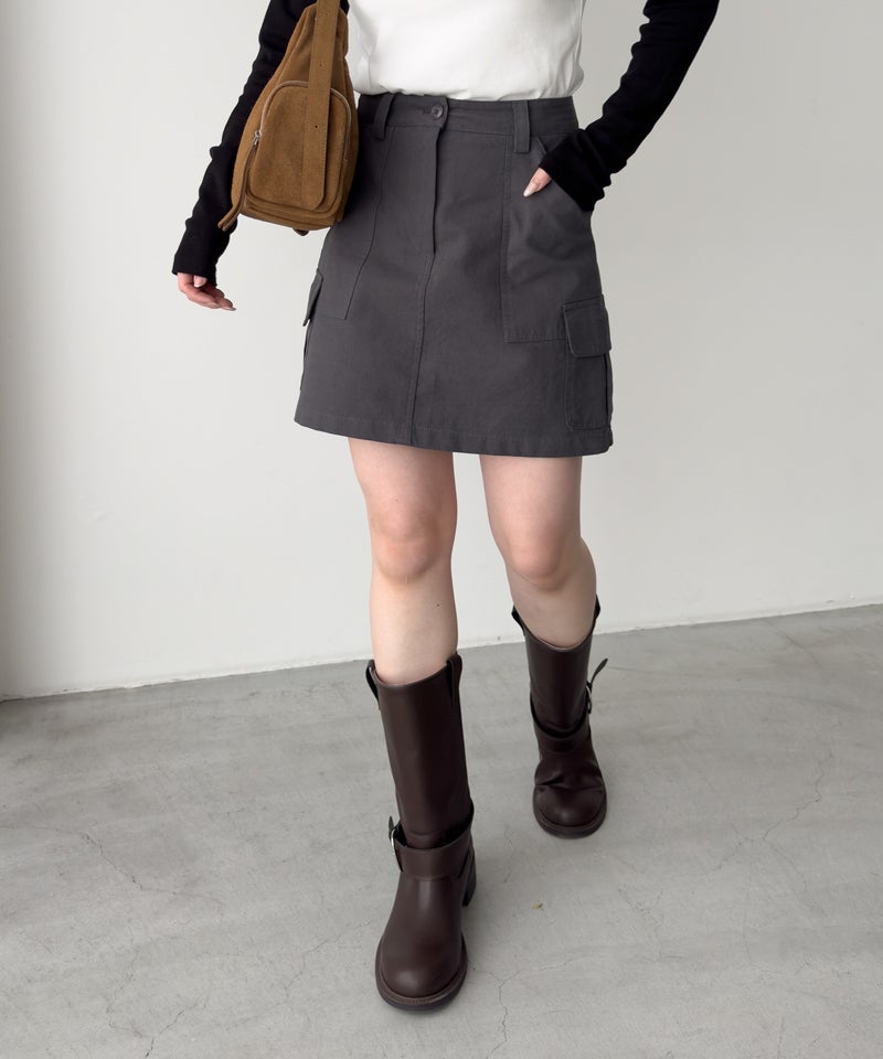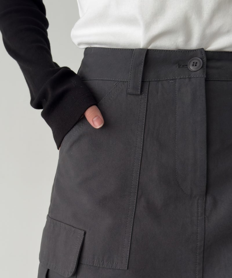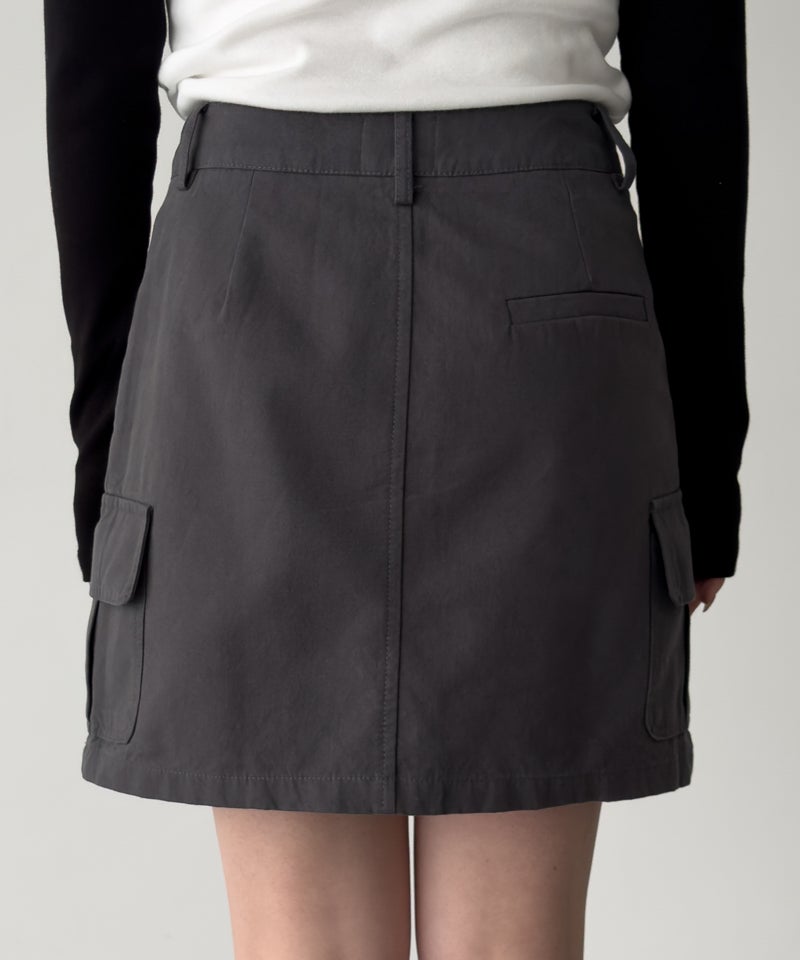 サイドのフラップポケットデザインがアクセントのカーゴミニスカート。