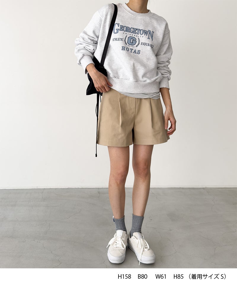 裾にかけて広がるシルエットで細見えしてくれるショートパンツ。