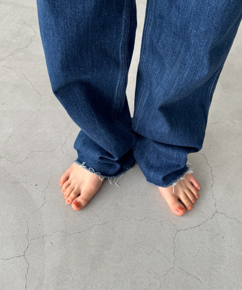 裾のカットオフデザインが、スタイリングに程よいアクセントと抜け感をプラスするデニムパンツ。