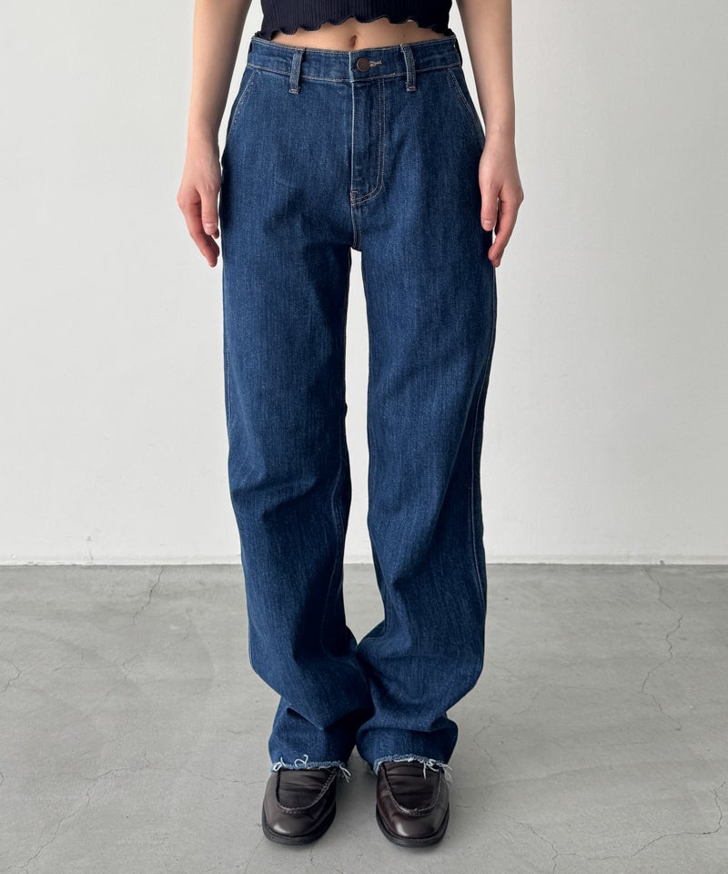 裾のカットオフデザインがアクセントになるのでスニーカーはもちろん、軽やかなサンダルやフラットシューズなど足元のお洒落も存分にお楽しみいただけます。