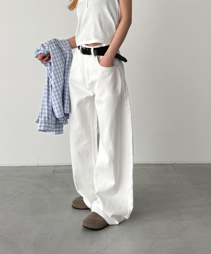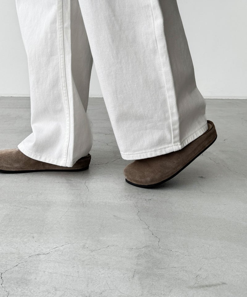 裾に向かって緩やかにカーブを描くフォルムで、脚のラインを拾わずリラクシーな穿き心地を叶えてくれます。