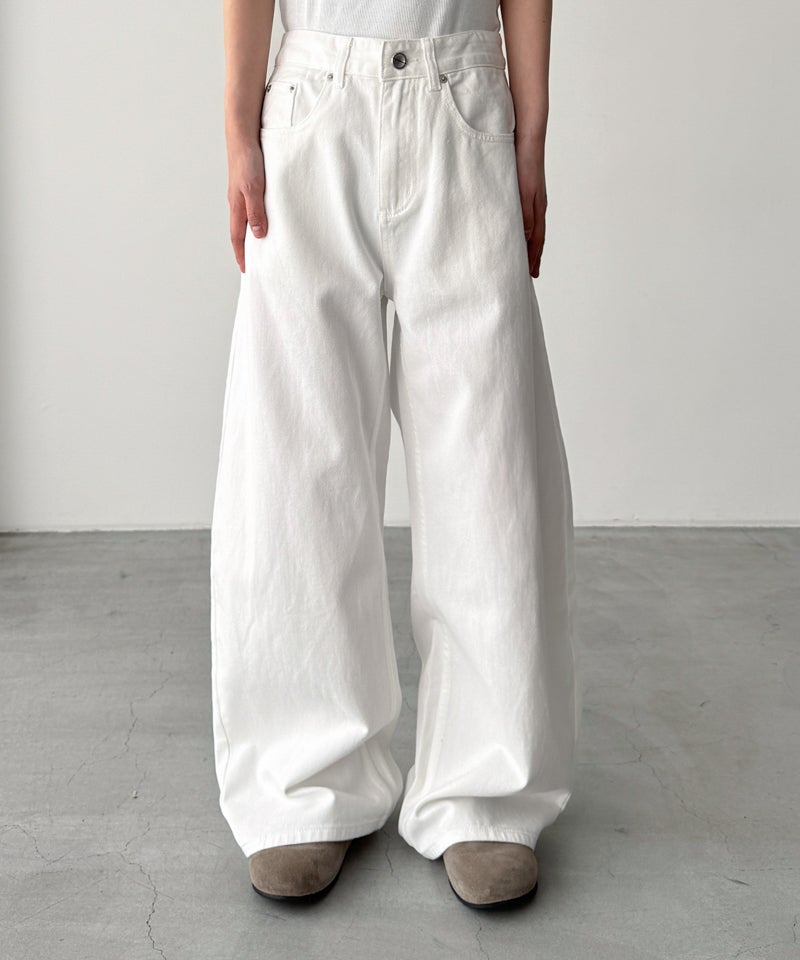 立体的に丸みを帯びたシルエットが、スタイリングに新鮮なアクセントをプラスするカーブパンツ。