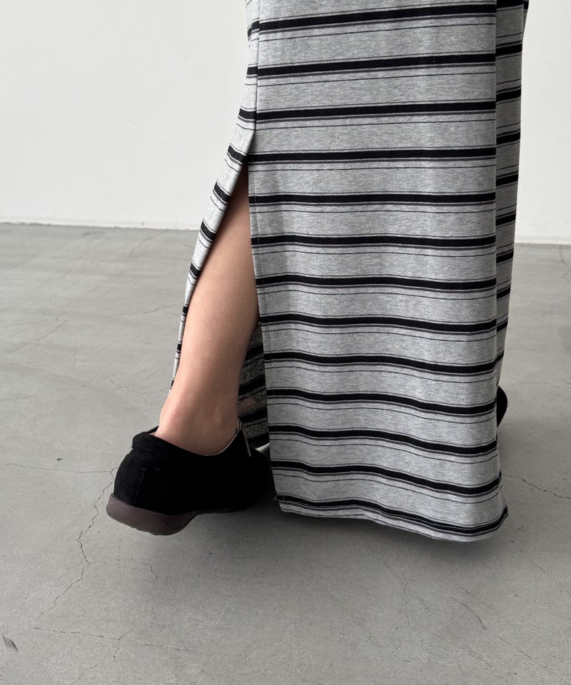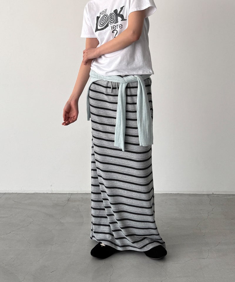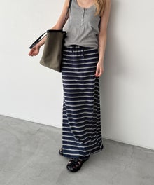 すっきりとしたIラインシルエットが、大人カジュアルな印象を与えるボーダーロングスカート。
