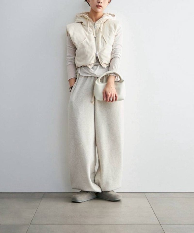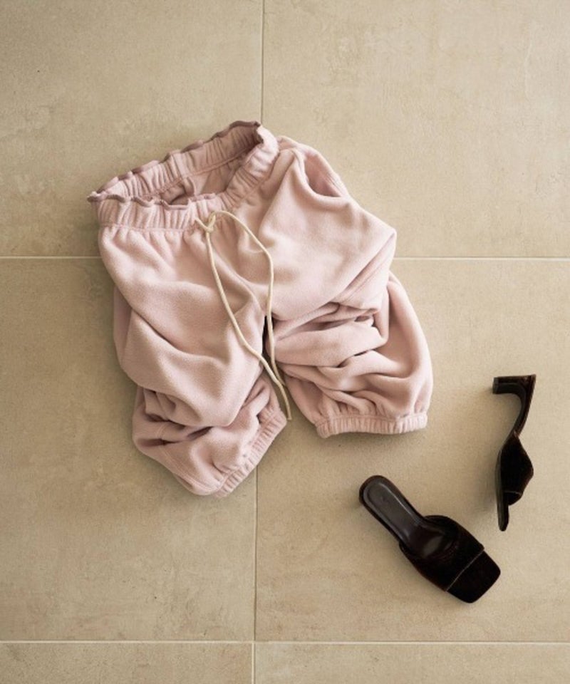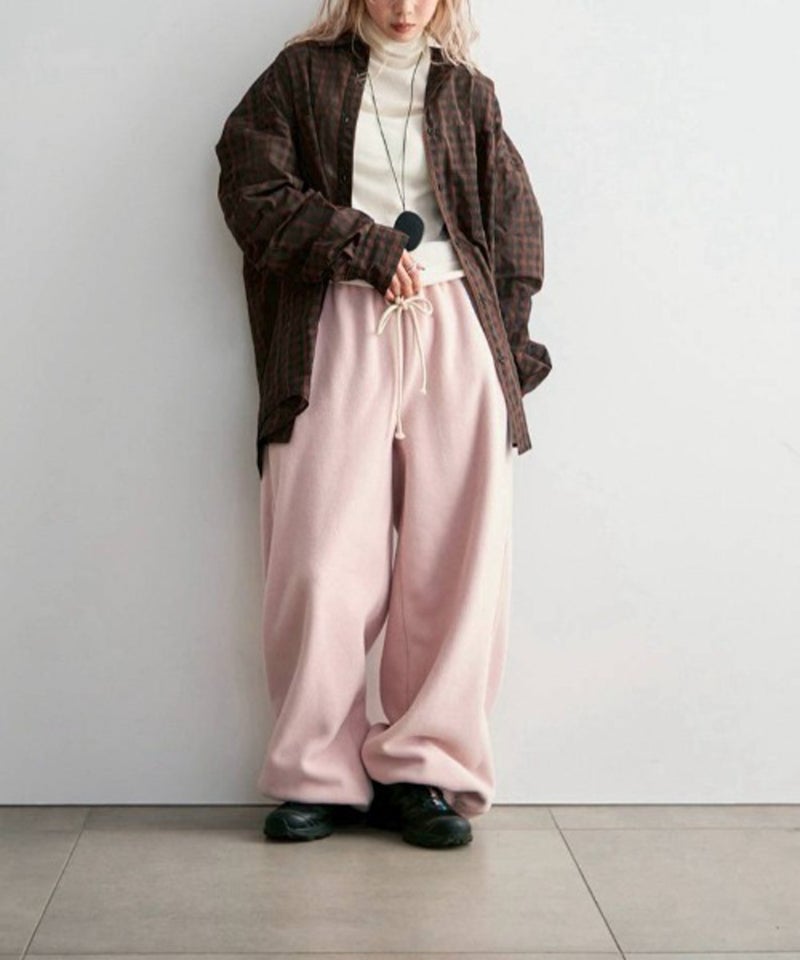 ラフなシルエットで仕立てたフリースパンツ。