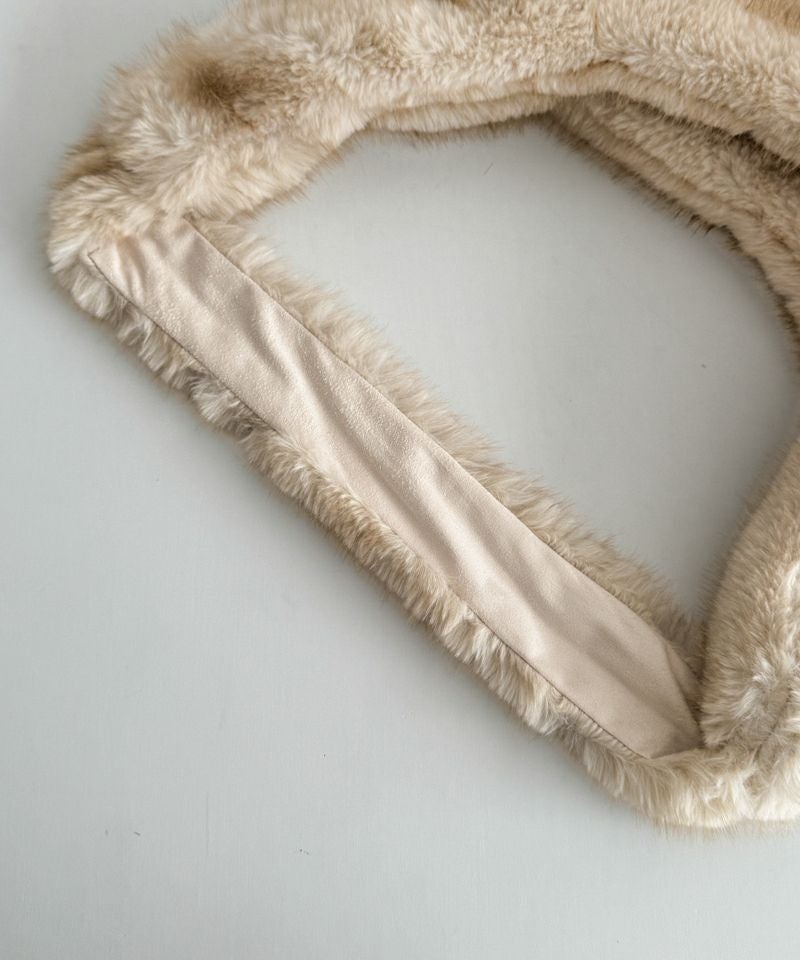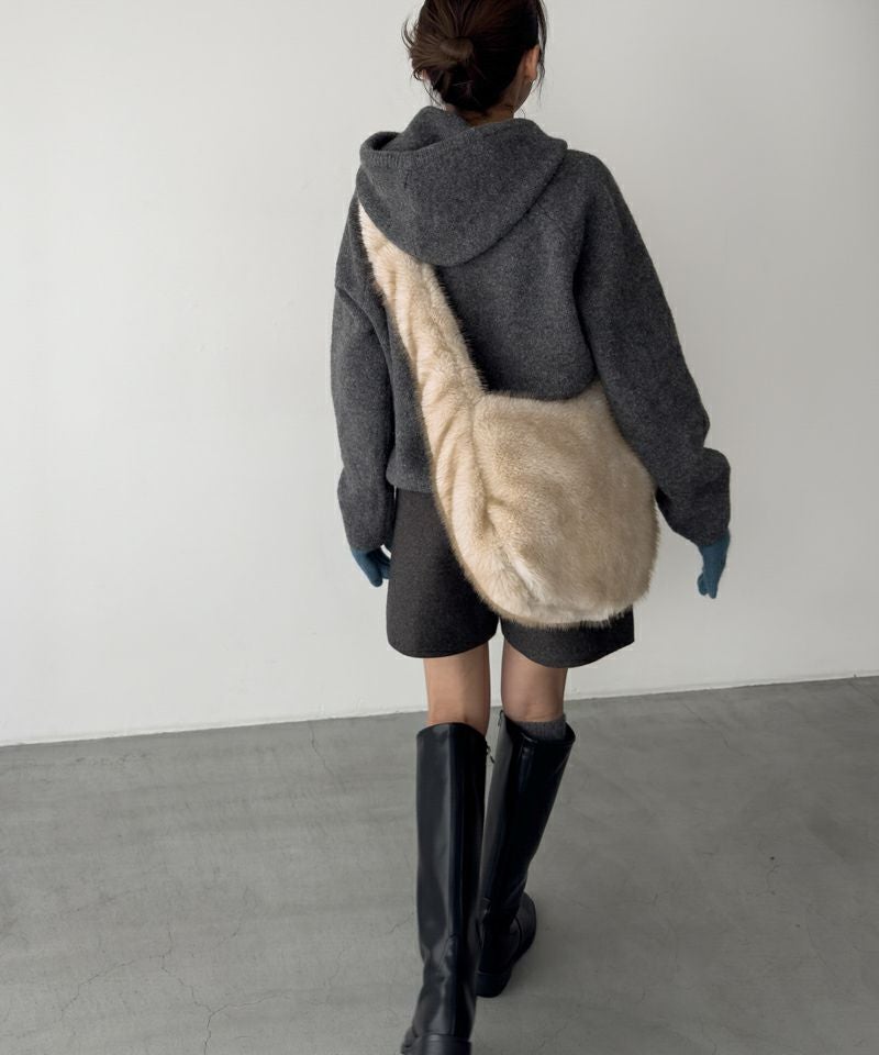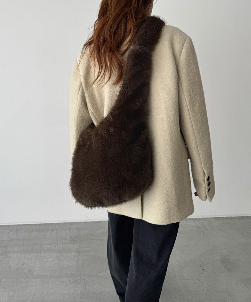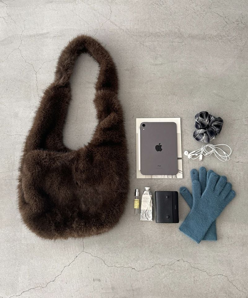ふわふわのファーで存在感のあるショルダーバッグ。