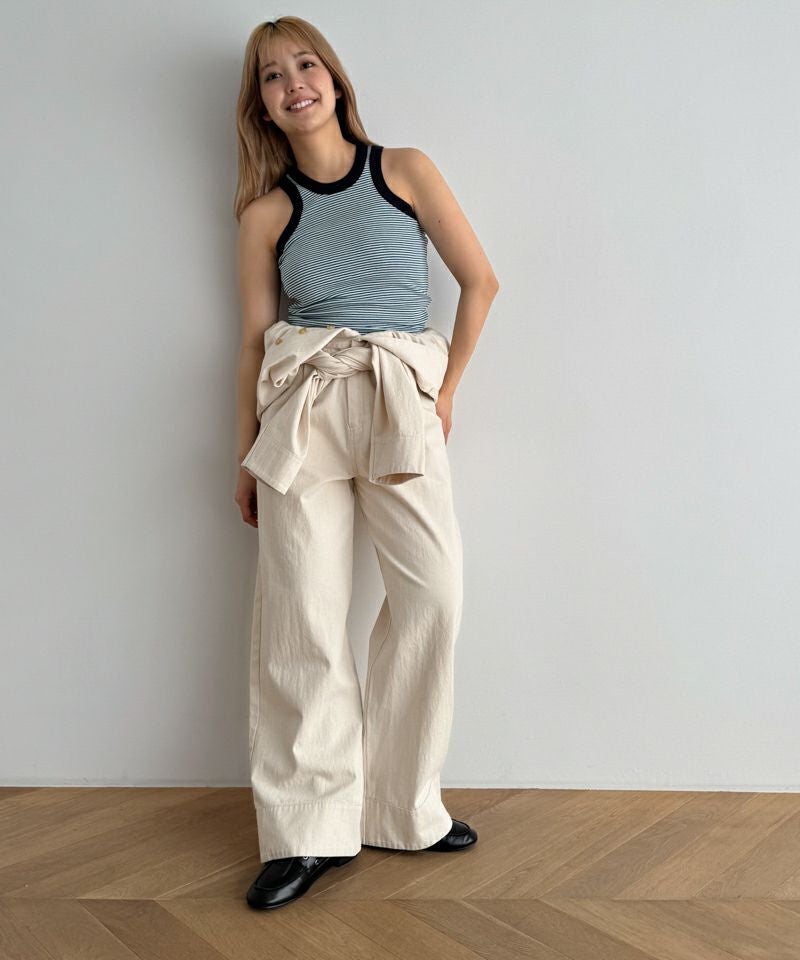 1枚で着るのはもちろん上半身部分をウエストで結び、パンツとしても着用いただけるのでコーディネートの幅も広がります。