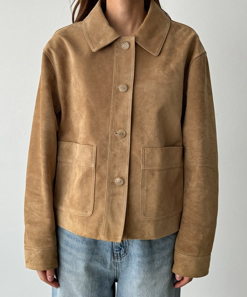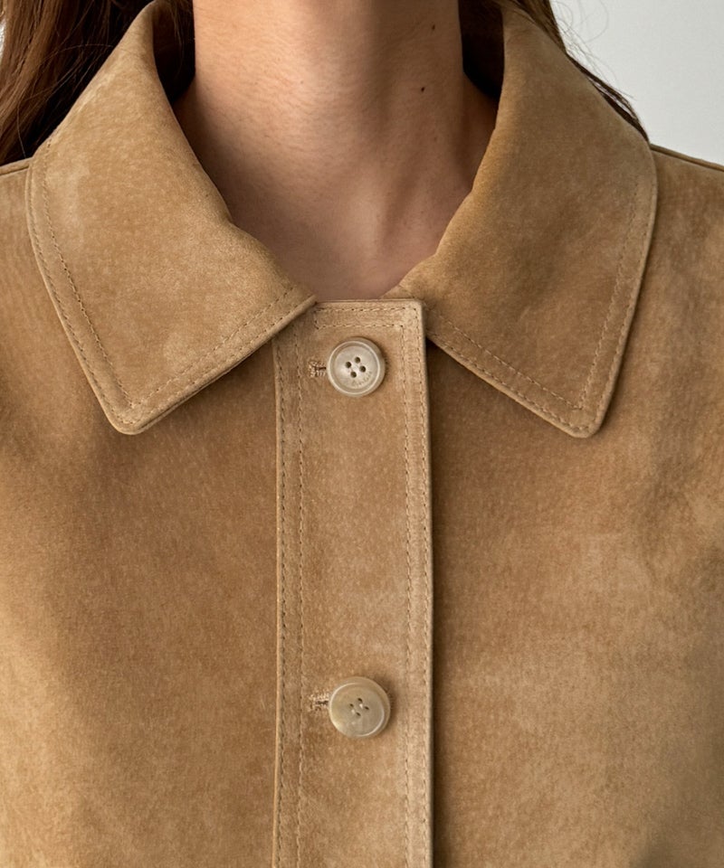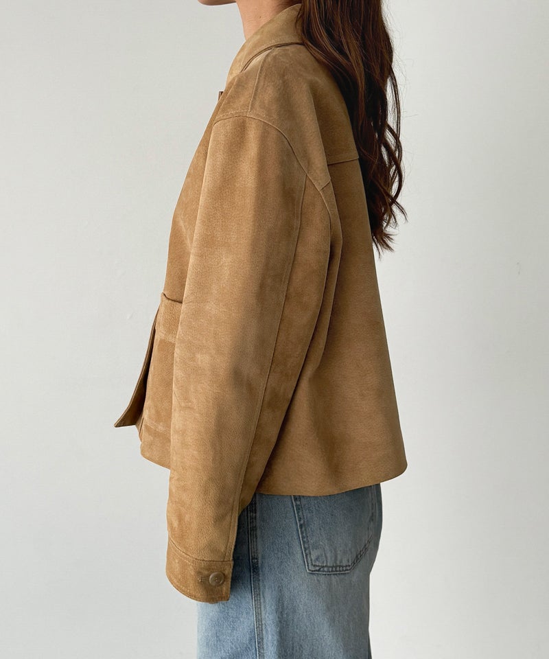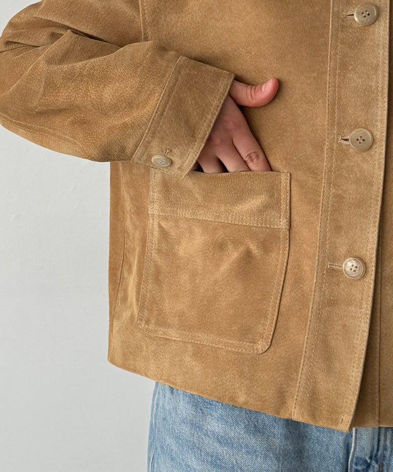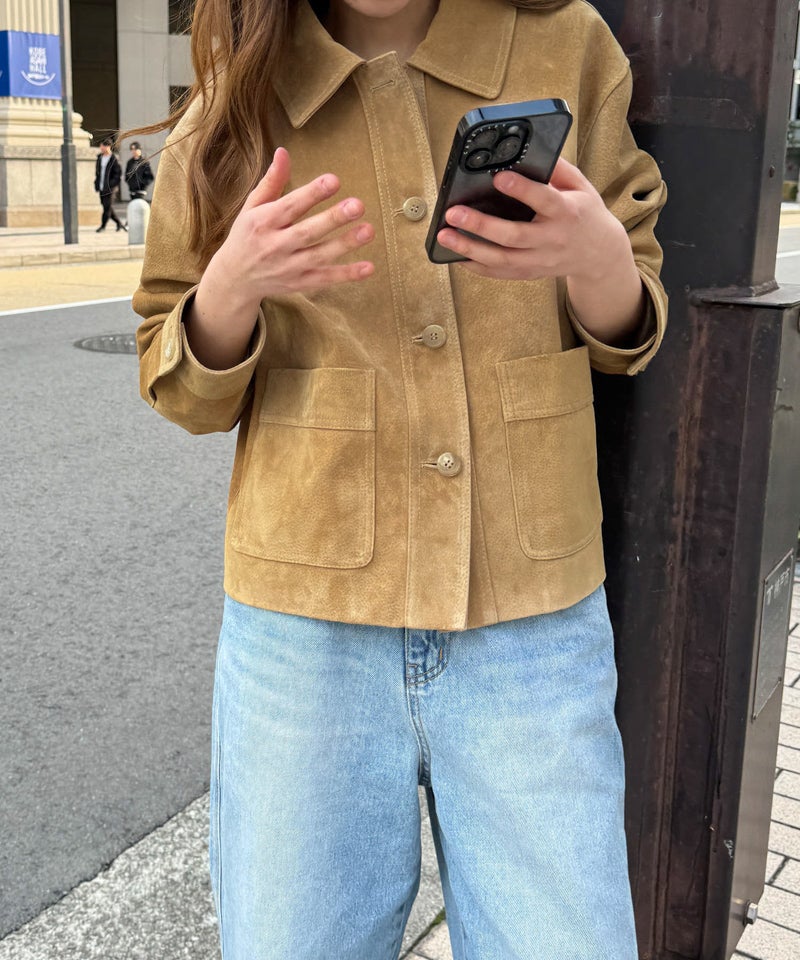大人の上品さを感じる高級感のあるスウェードジャケット。