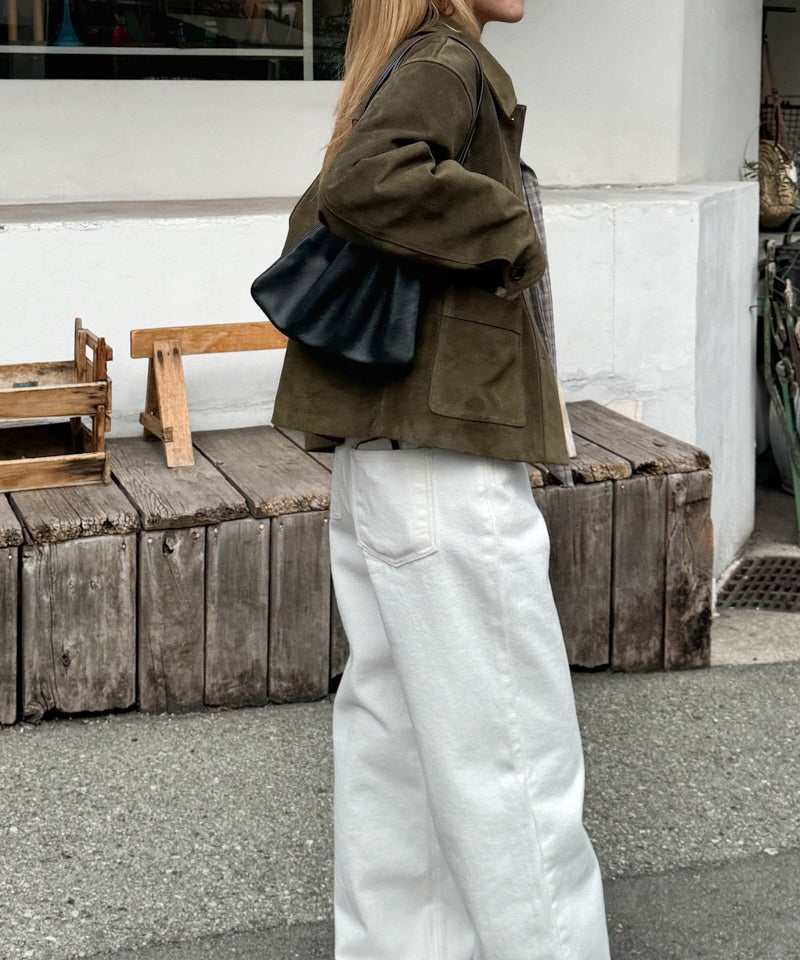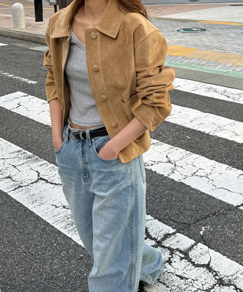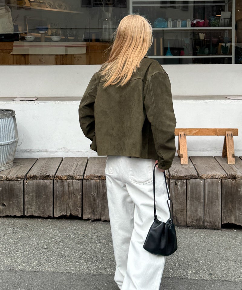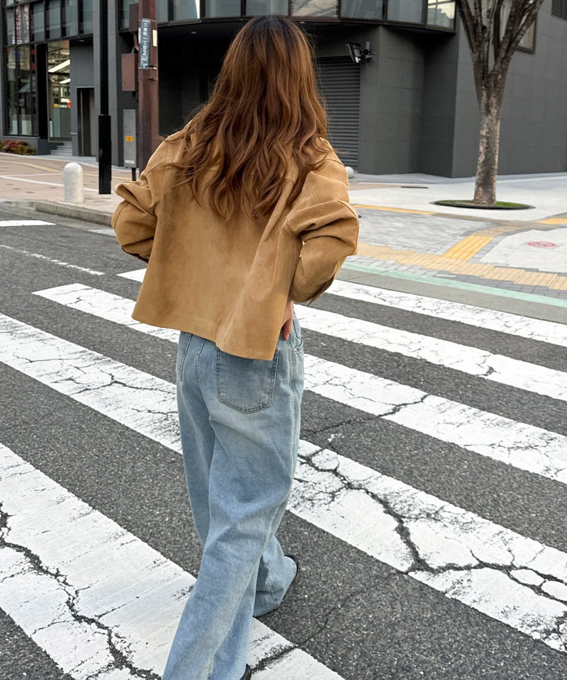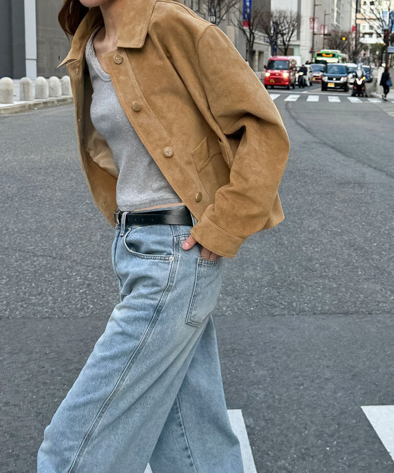 大人の上品さを感じる高級感のあるスウェードジャケット。