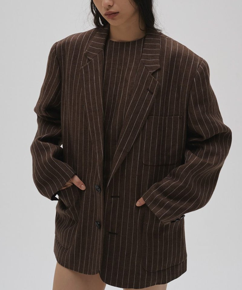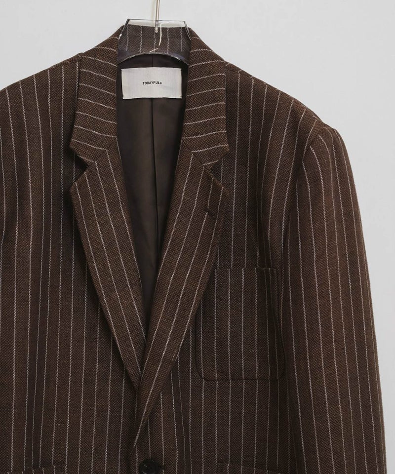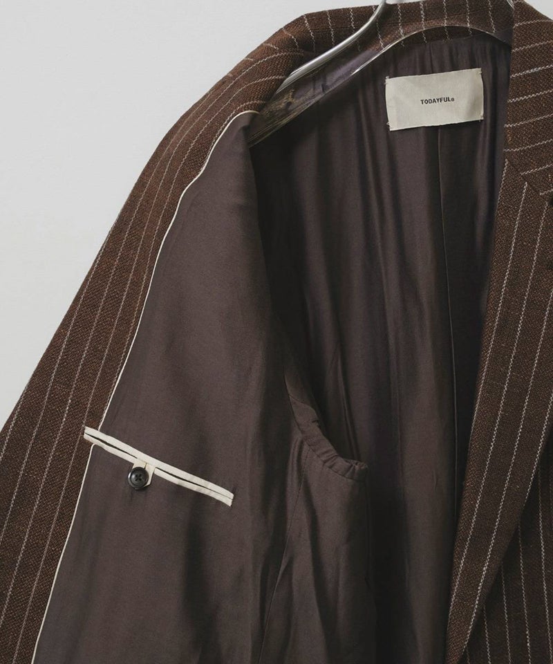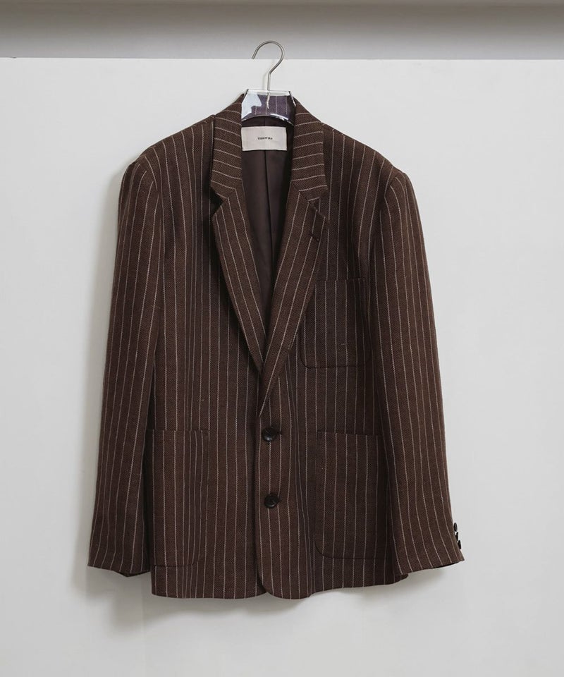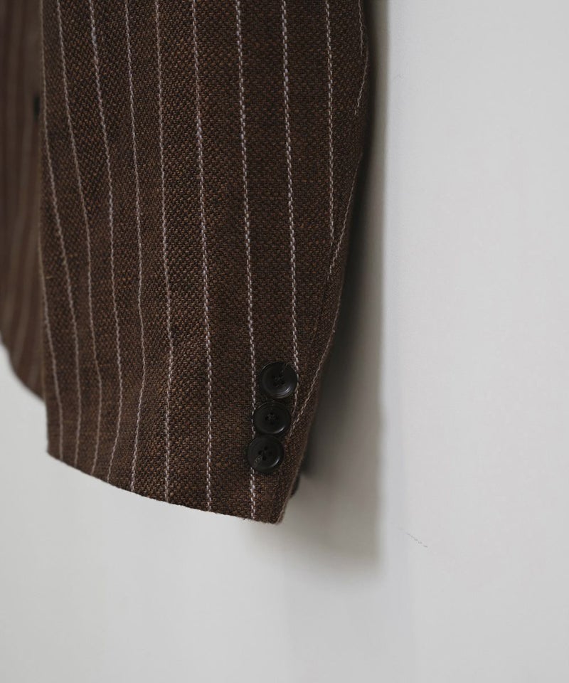 上質なリネン100%生地を使用し、オリジナルのストライプ柄で仕上げたジャケット。