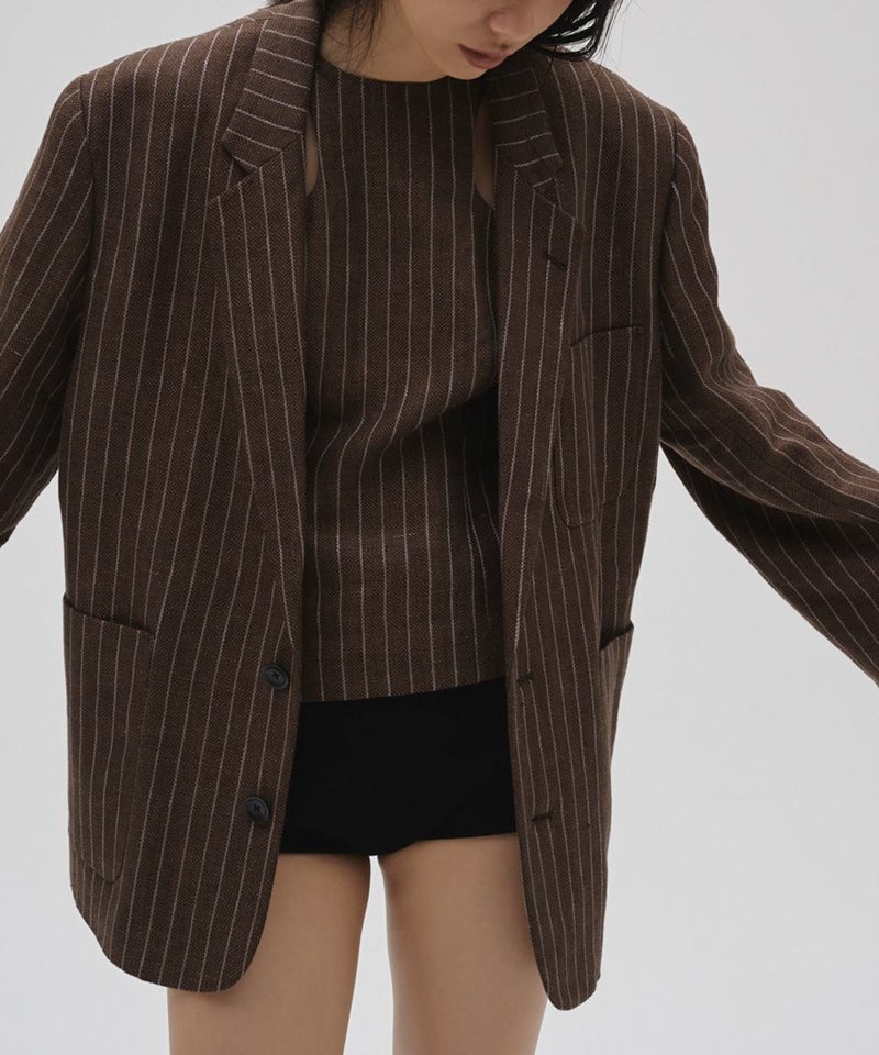 Boyfriend Stripe Linen Jacket ボーイフレンドストライプリネンジャケット/12610108