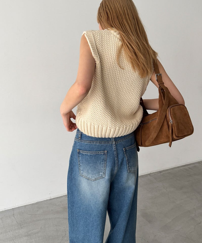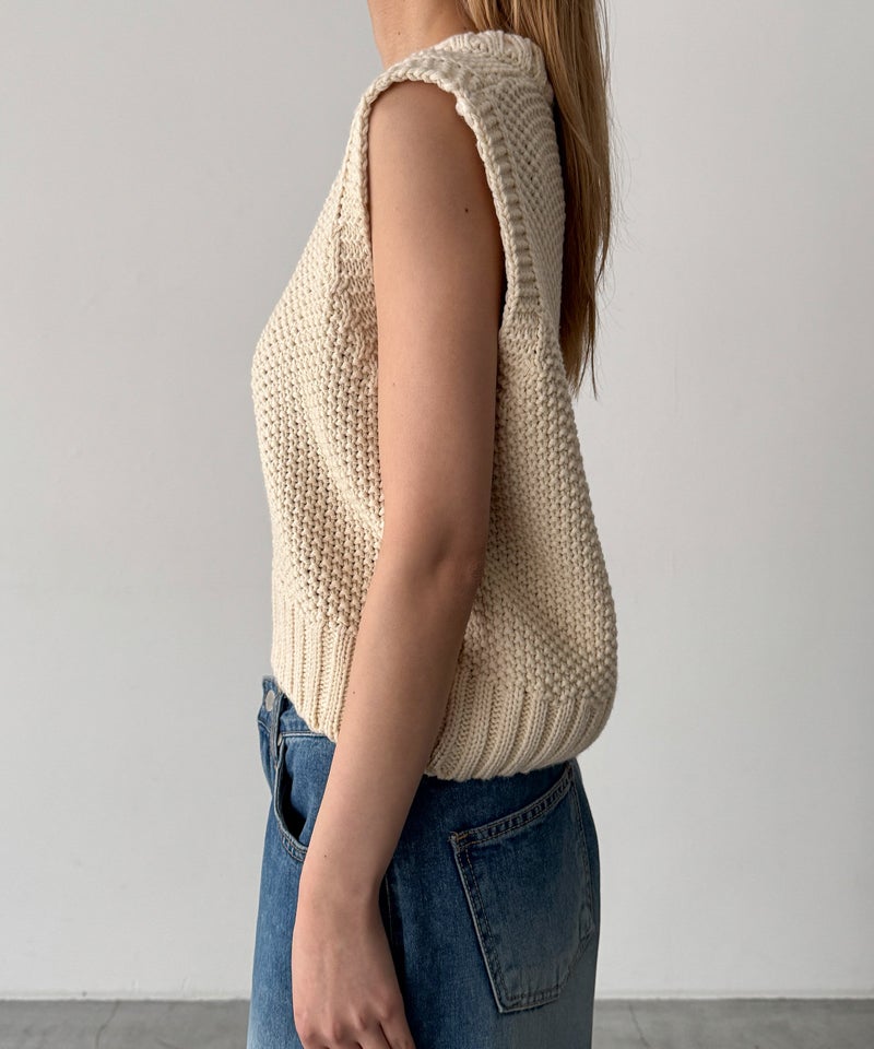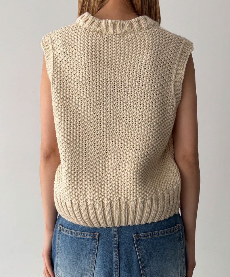 ポコポコとした凹凸のある編み地が可愛らしい、かのこ編みのニットベスト。