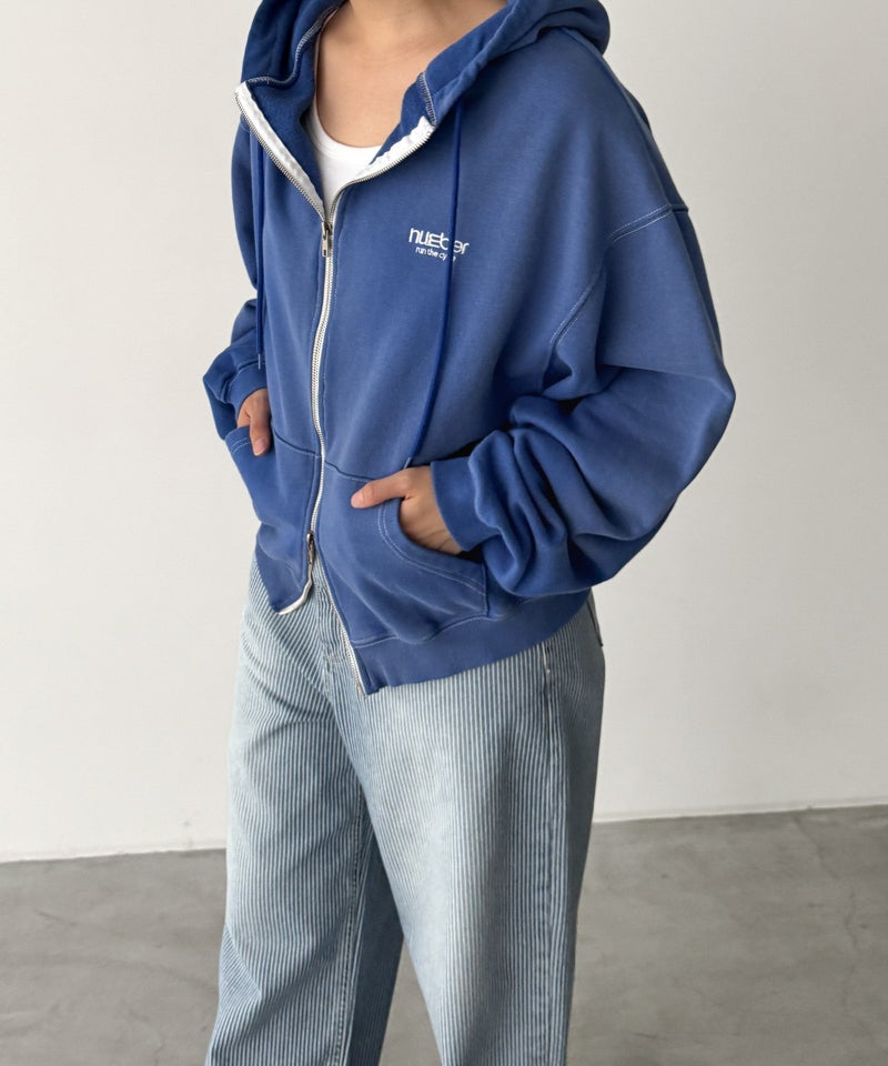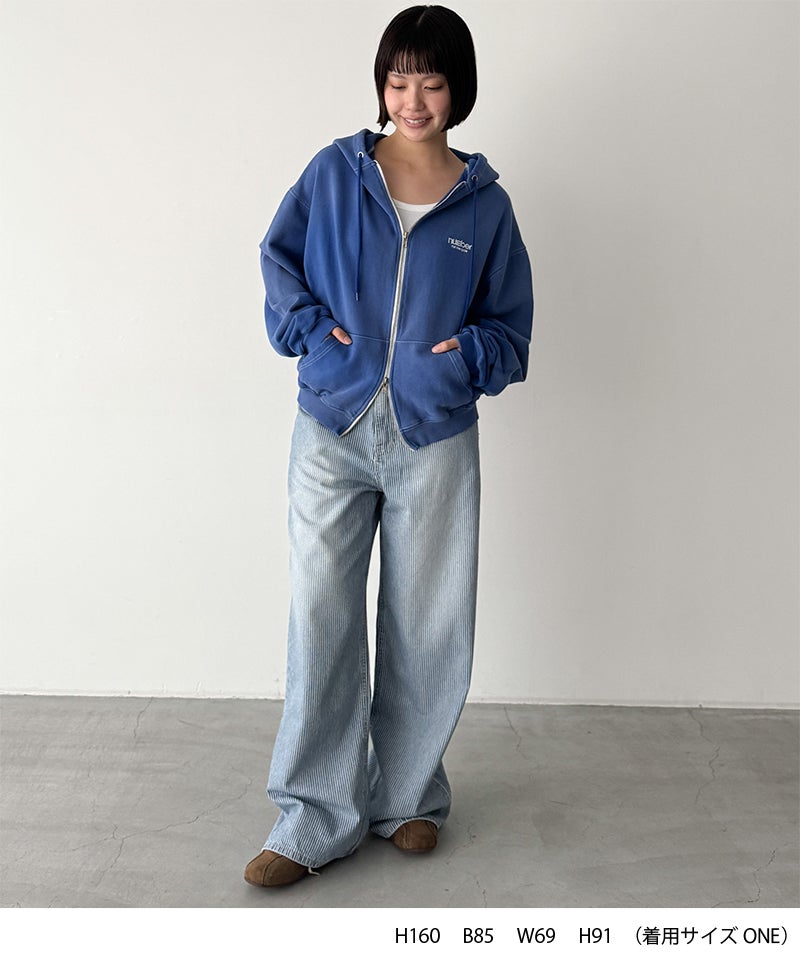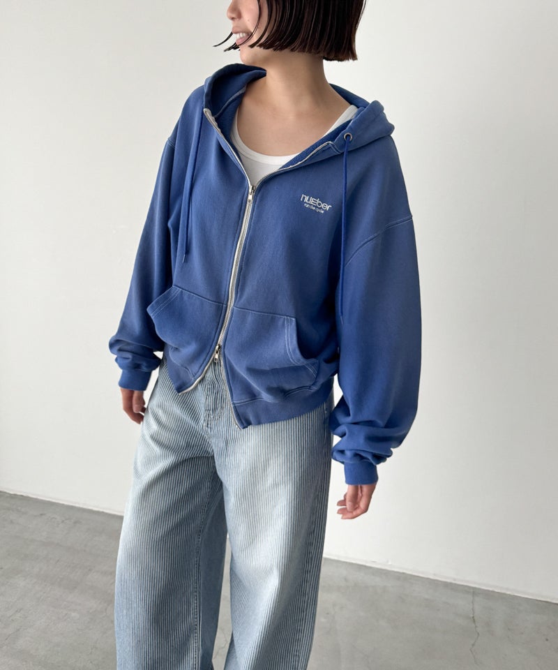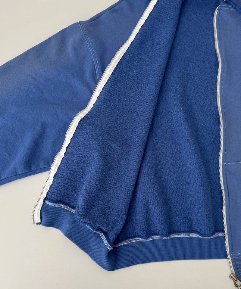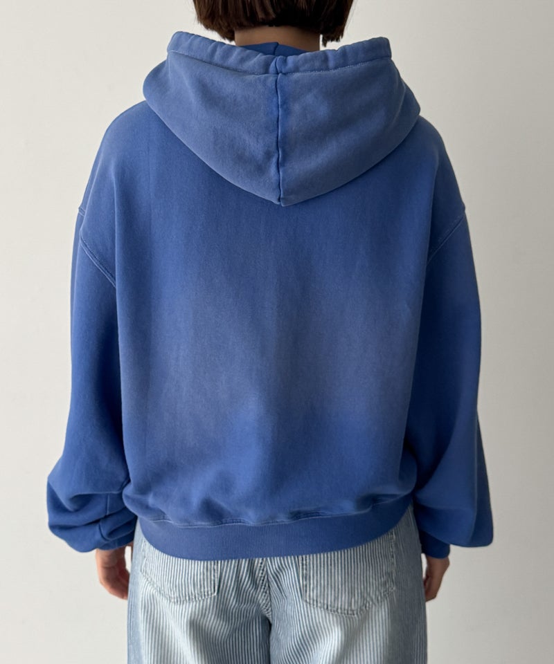 長年着込んだようなウォッシュ加工を施し、絶妙なフェード感のあるブルーカラーが目を惹くジップパーカー。