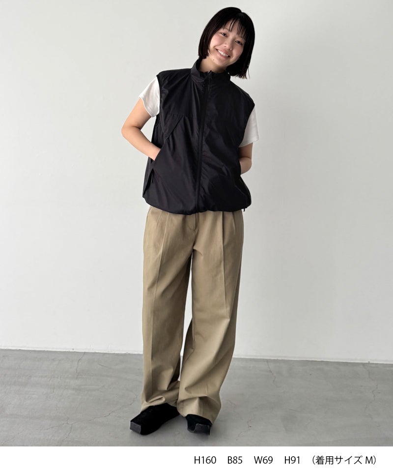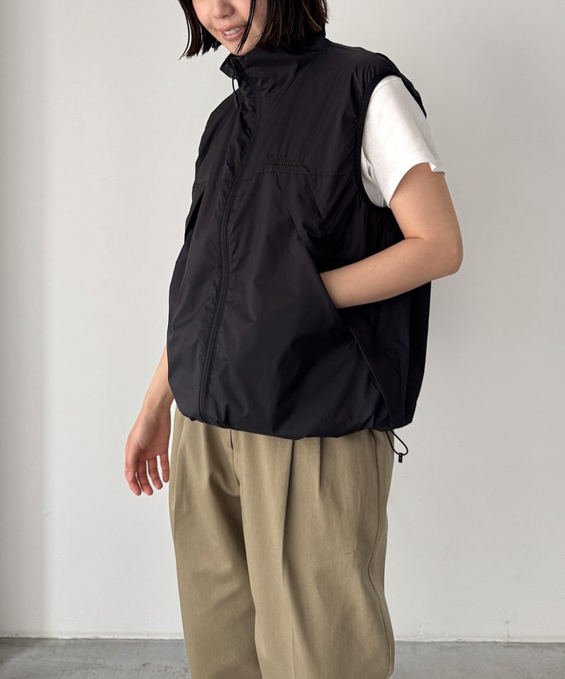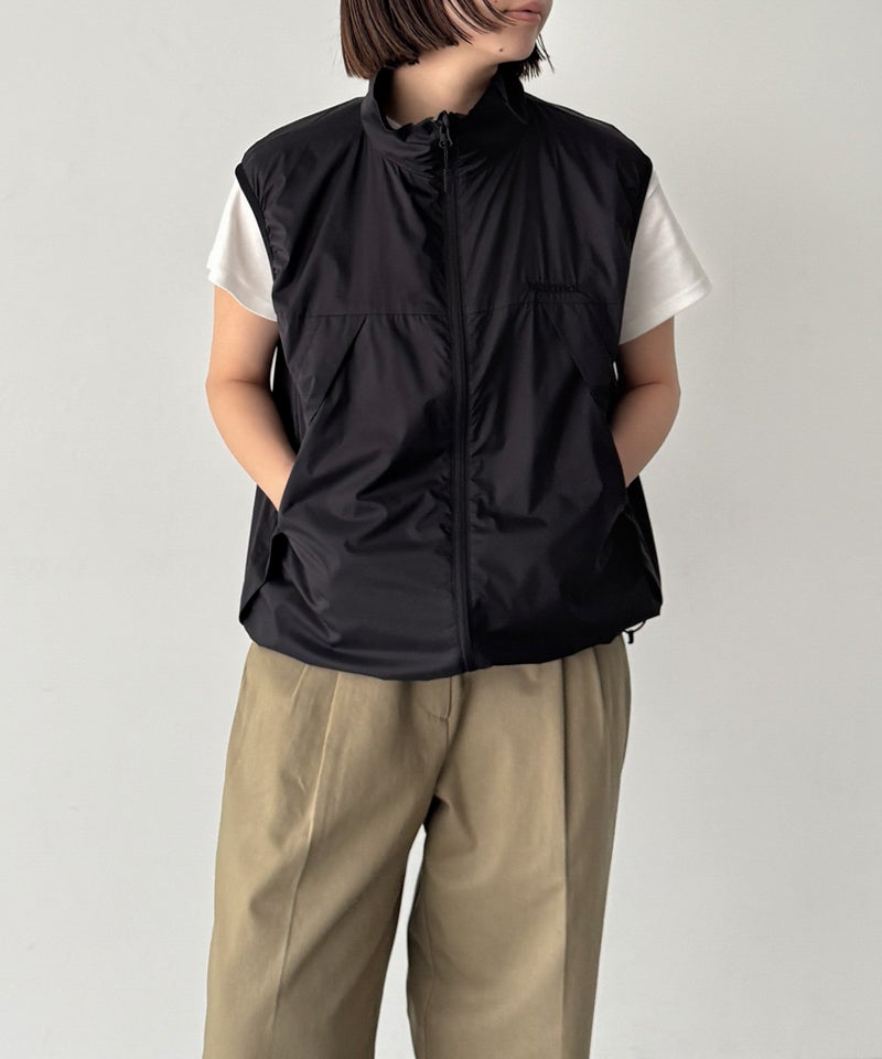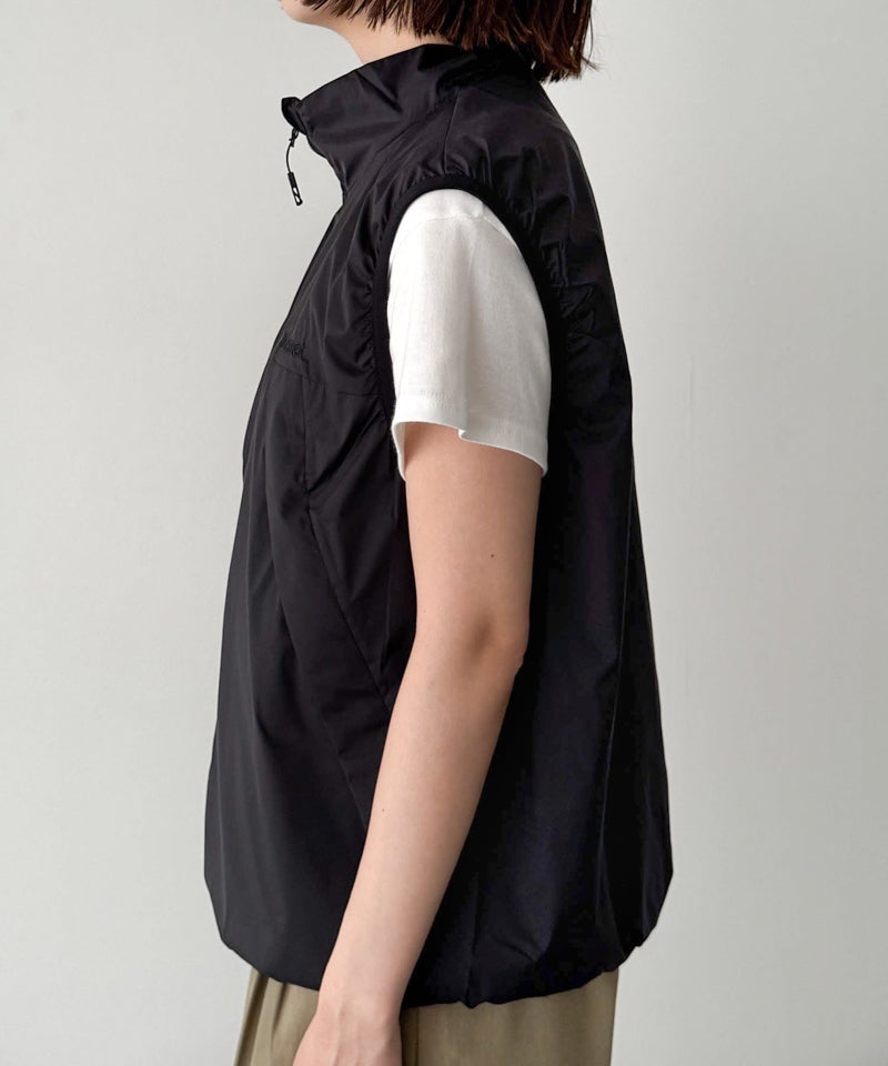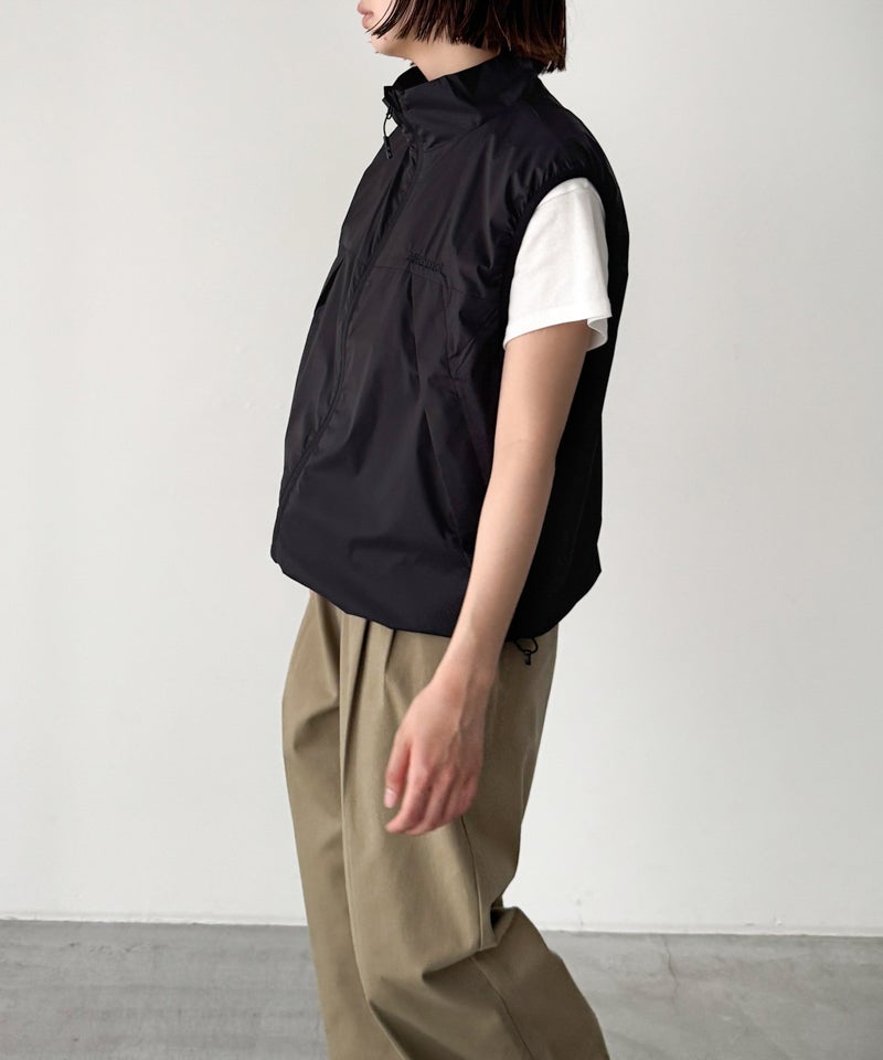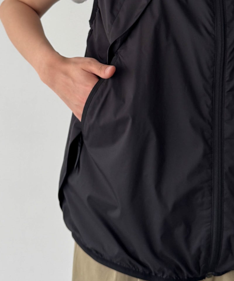 東レの20デニールのシャドーリップ素材を採用した、軽量で防風性に優れたベスト。