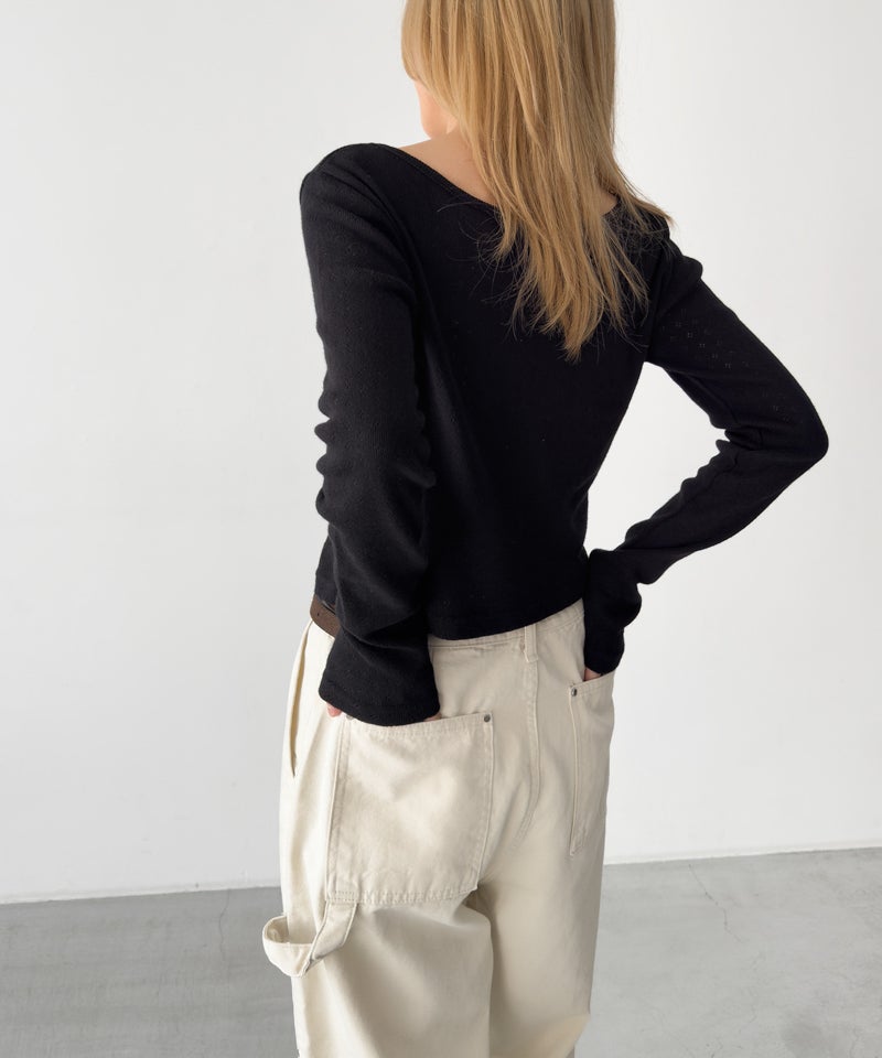 首元は広めのVネックなのでデコルテラインを綺麗に見せてくれます。