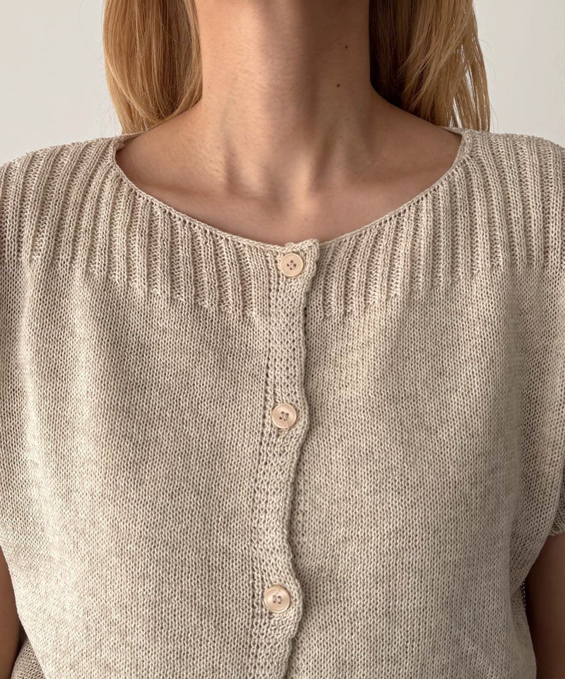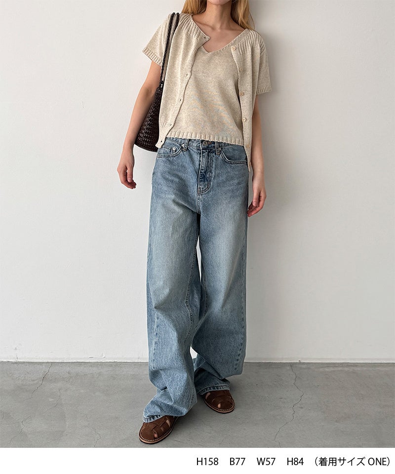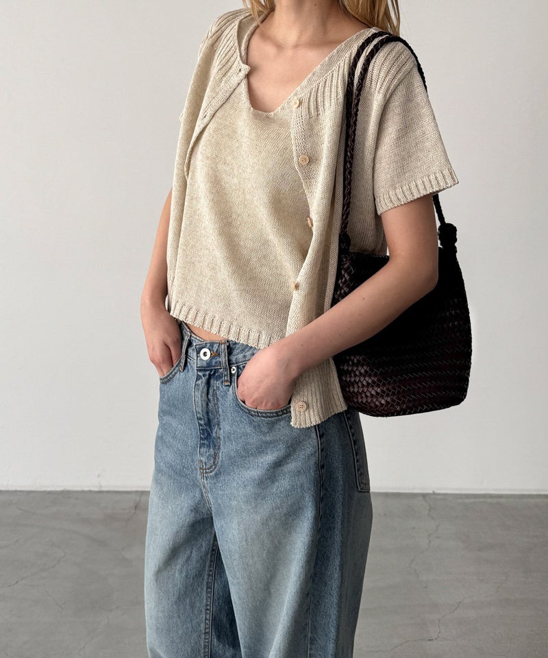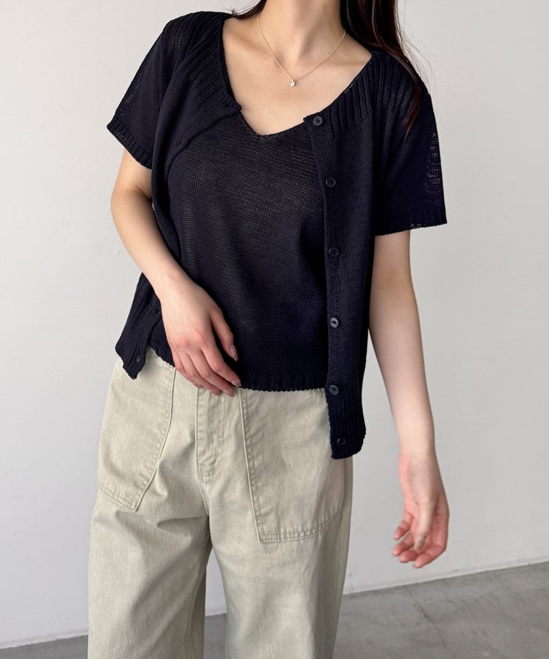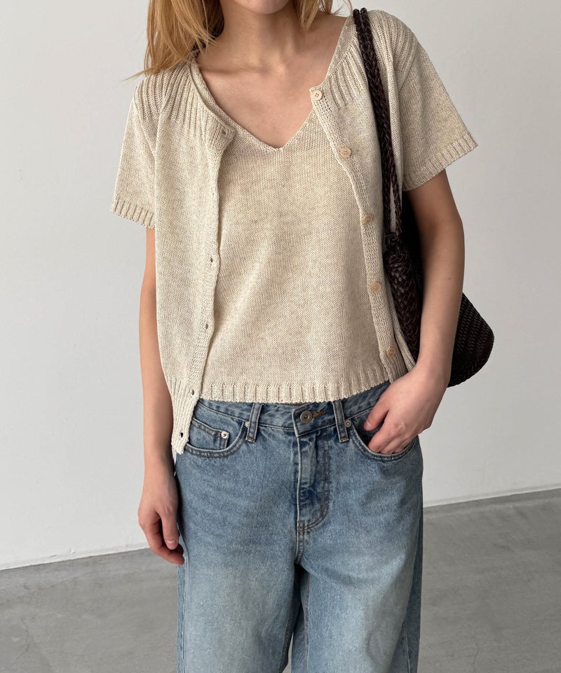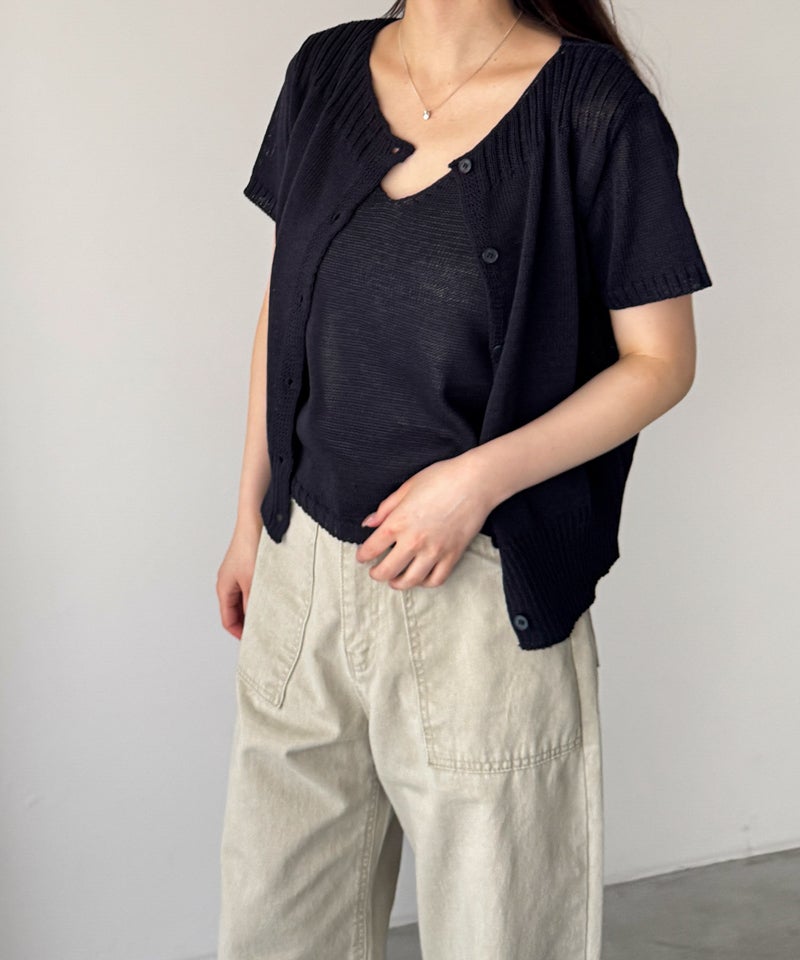 半袖カーディガンとVネックのタンクトップがセットになった、着回し力抜群のアンサンブル。