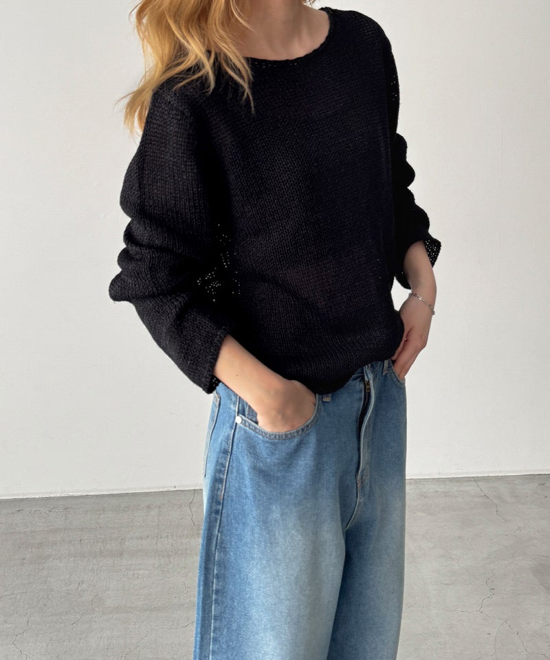 軽やかな見た目で、季節の変わり目にも取り入れやすいペーパーボートニット。