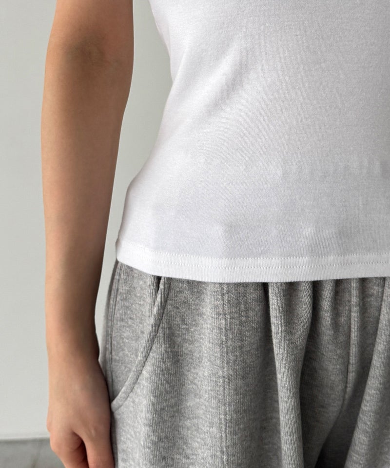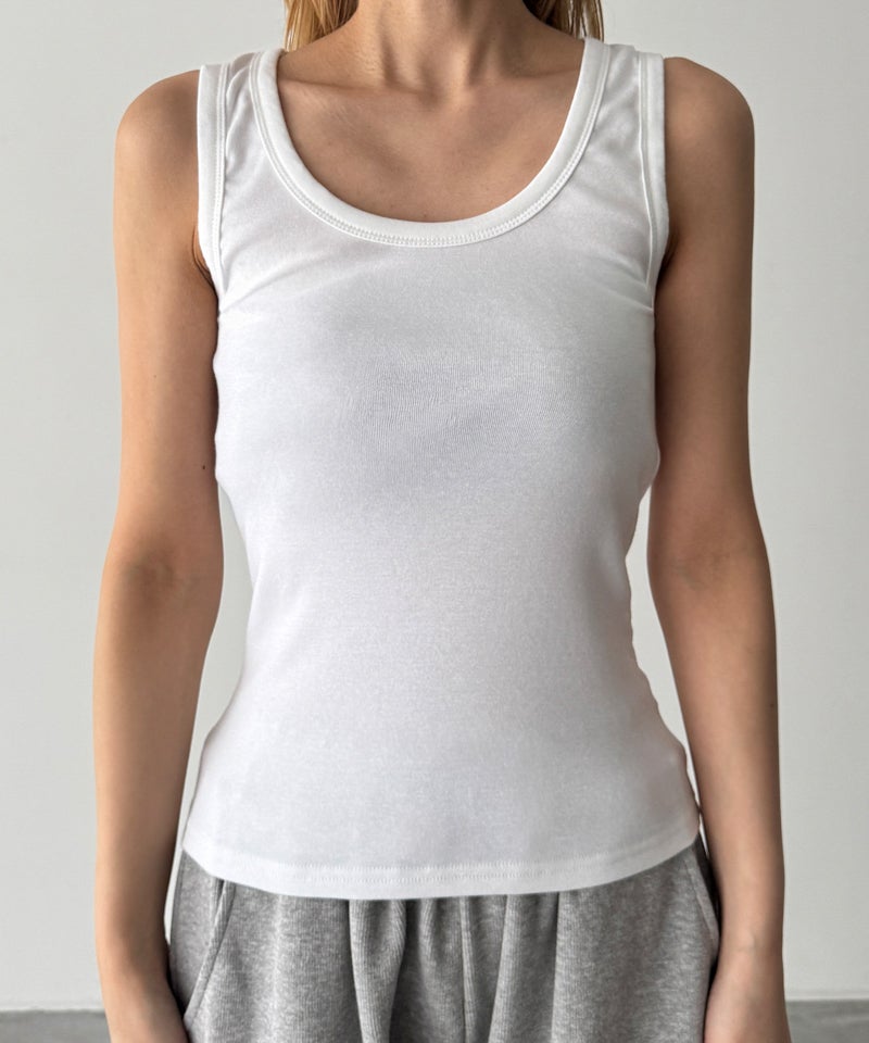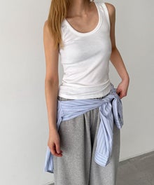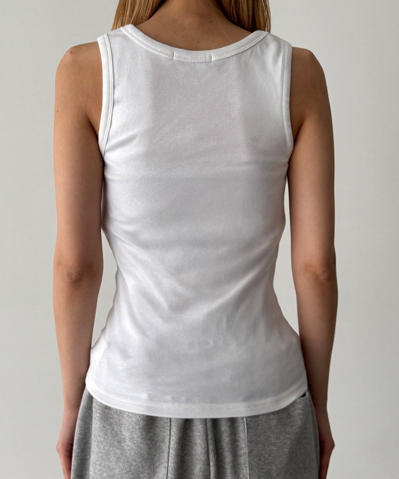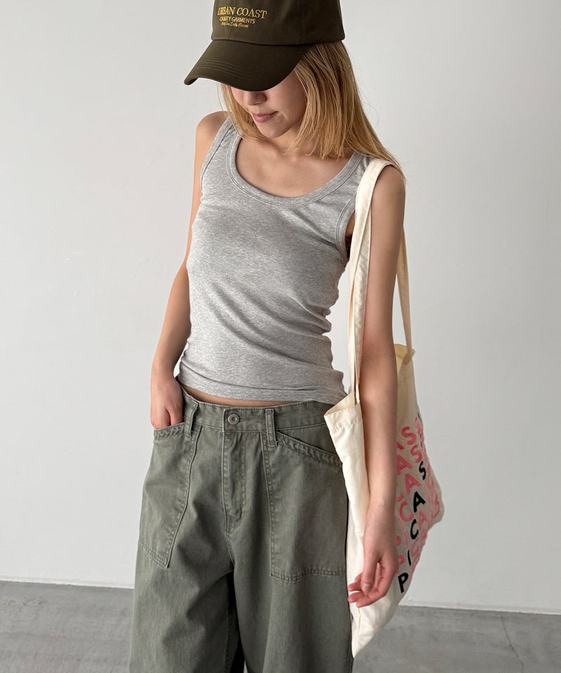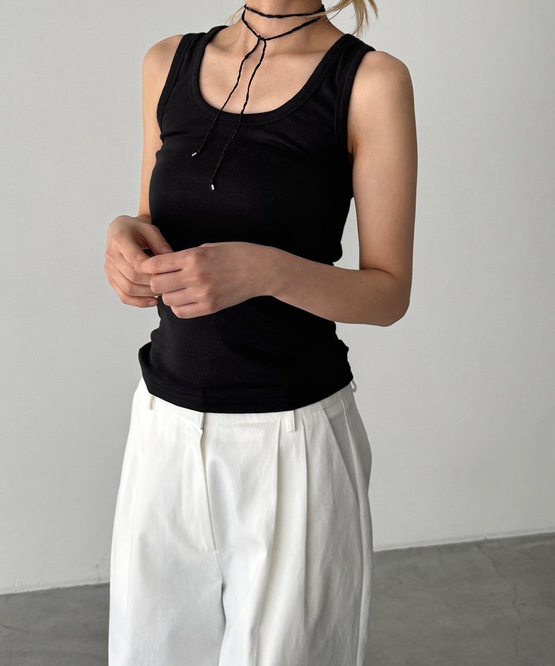 深めに開いたラウンドネックが、デコルテを綺麗に見せてくれるタンクトップ。