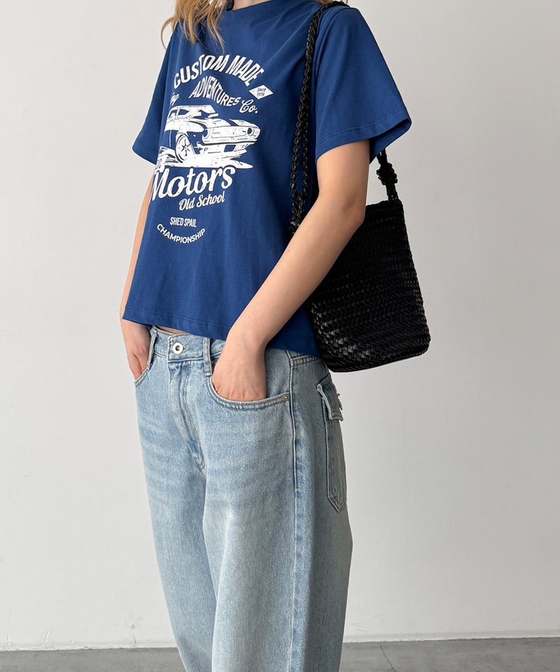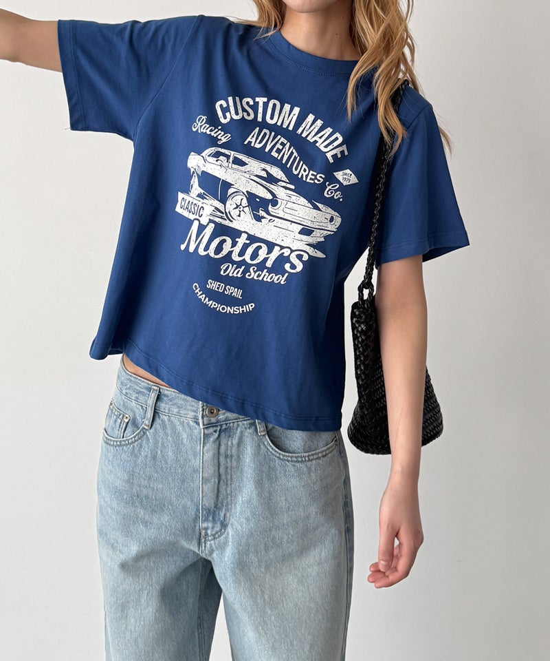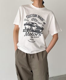 レトロなムードが漂う"Motors"プリントTシャツ。