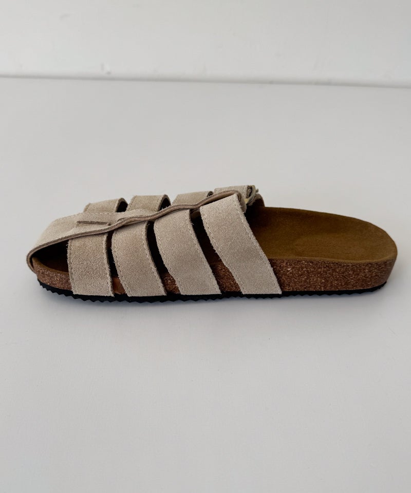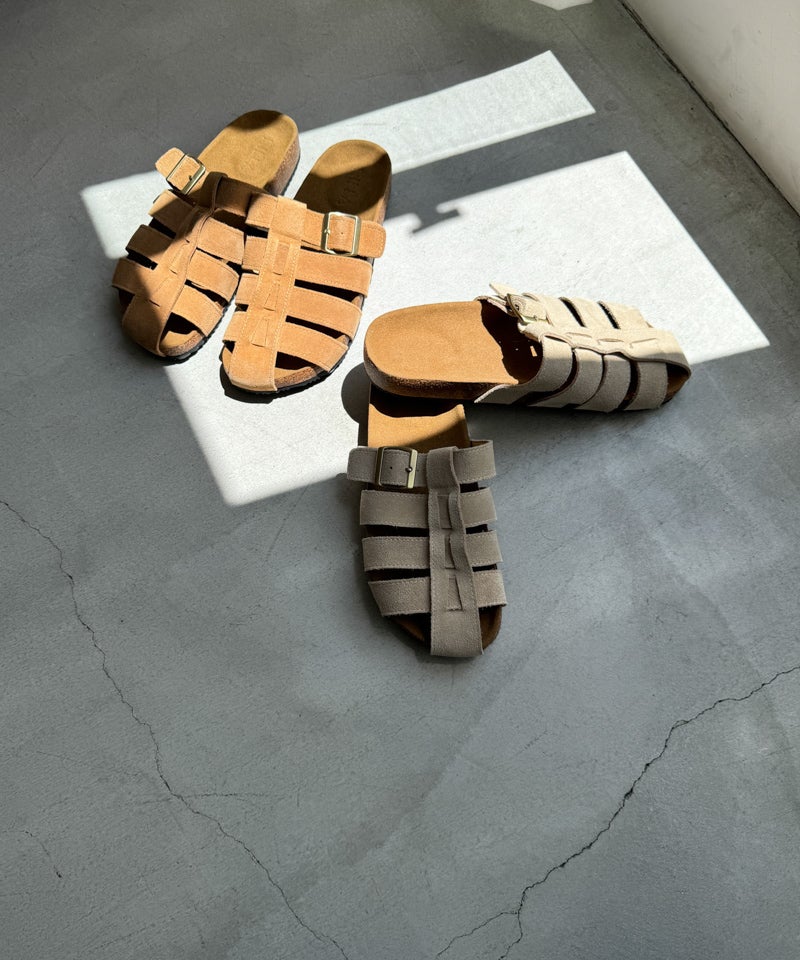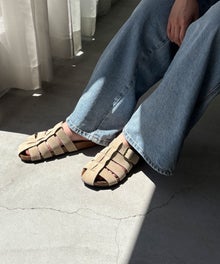 甲を編み込んだベルトディテールが特徴のグルカサンダル。