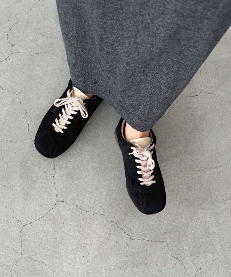 コーディネートのアクセントになるフェイクスエードスニーカー。