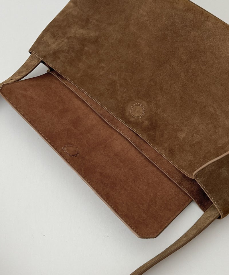 台形フォルムが特徴のビッグサイズのショルダーバッグ。