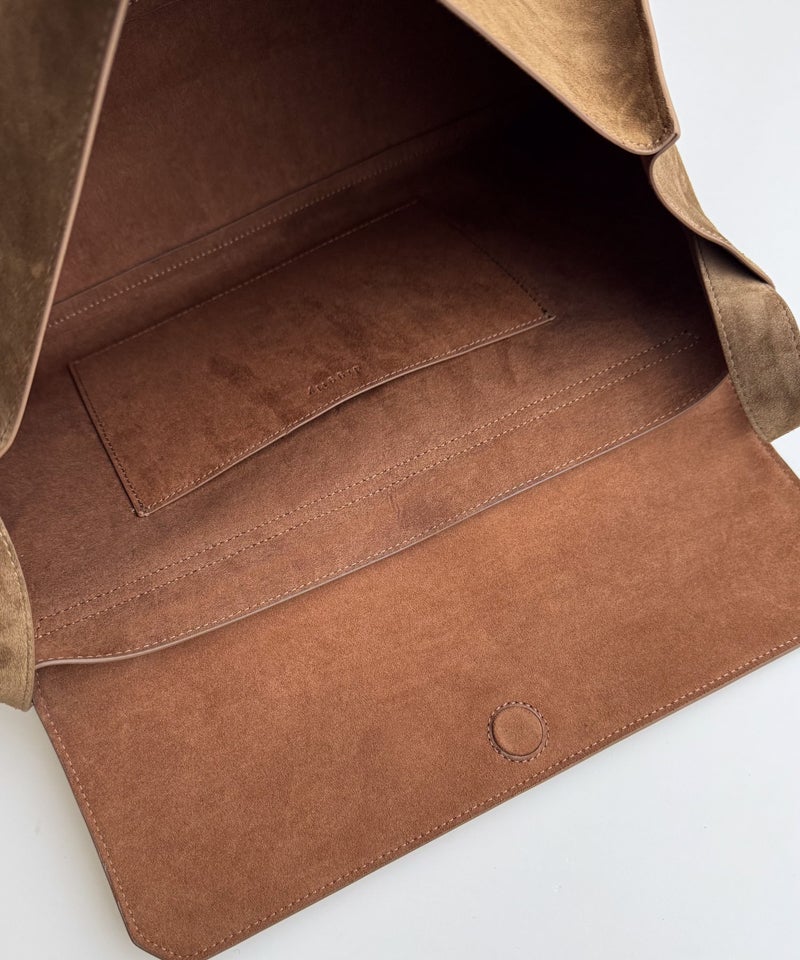 コーディネートに馴染みやすいブラウンカラーのスウェード生地。