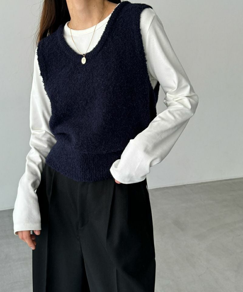シンプルなデザインなのでベストやカーディガンのインナーにも最適◎