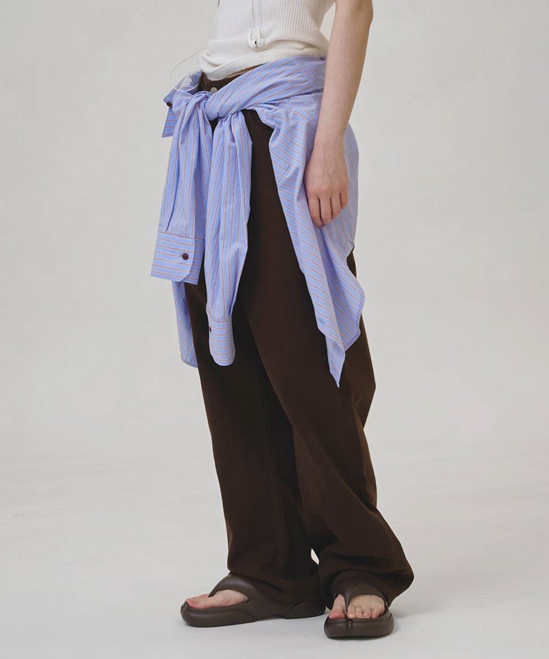 通気性のよい素材は季節を問わず活躍し、同じ生地を使用したEasy Stripe Half Pantsとのセットアップスタイルもおすすめです。