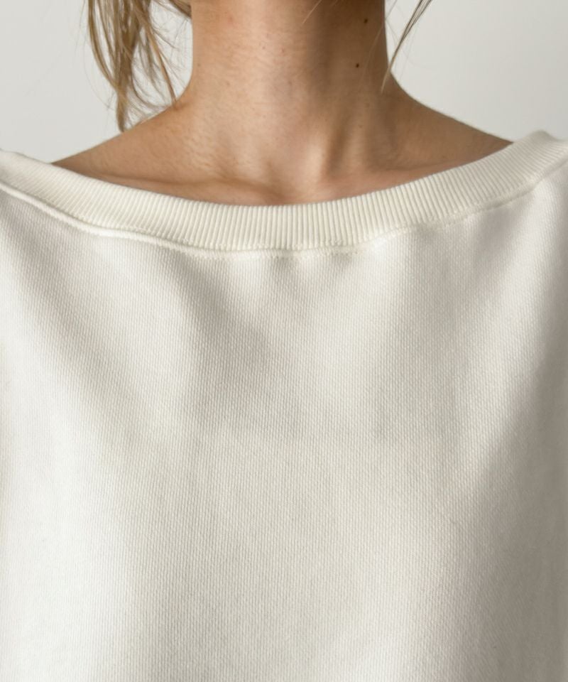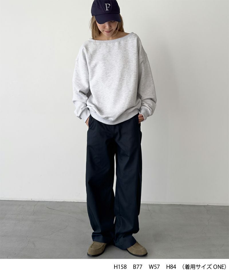 首元はボートネック仕様で、デコルテラインを綺麗に見せてくれる1枚。
